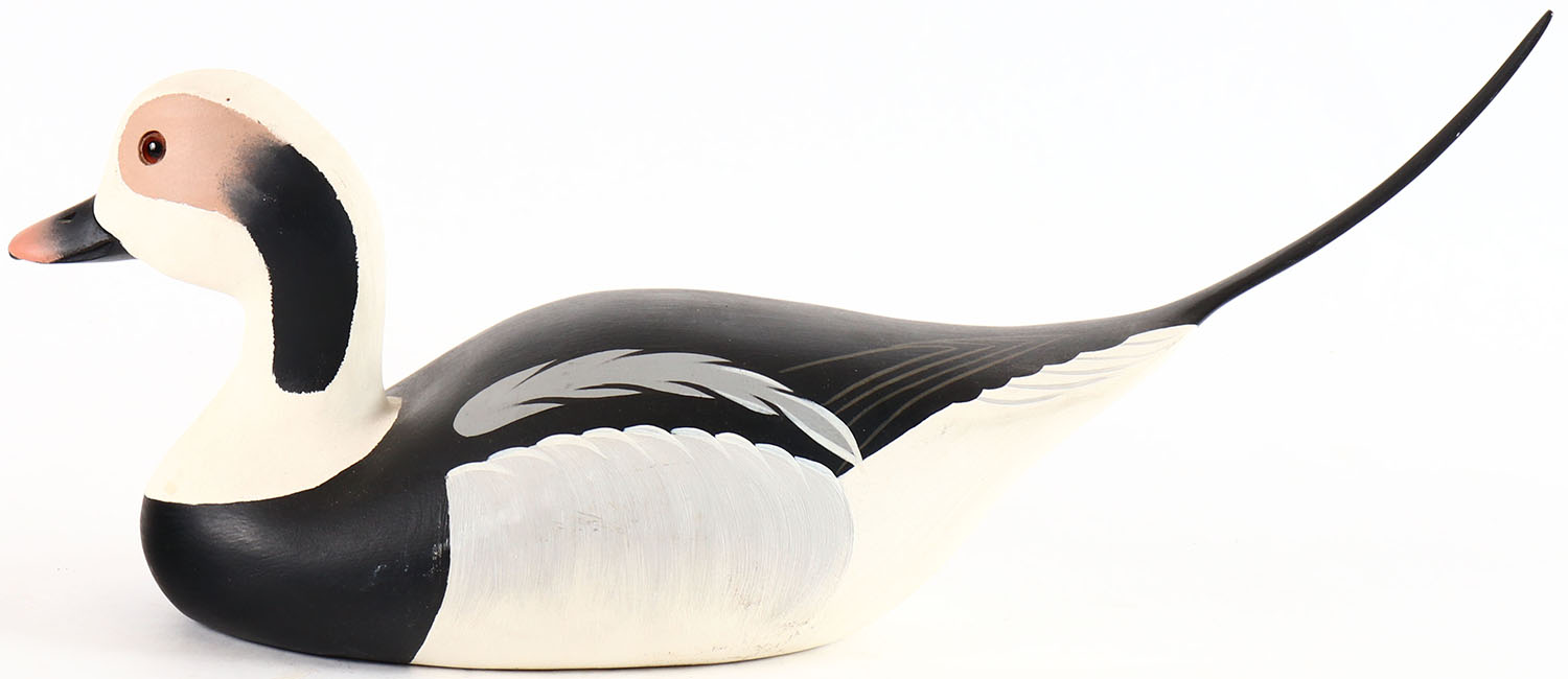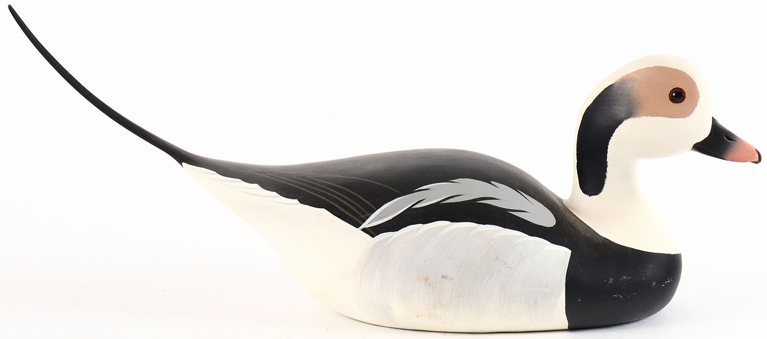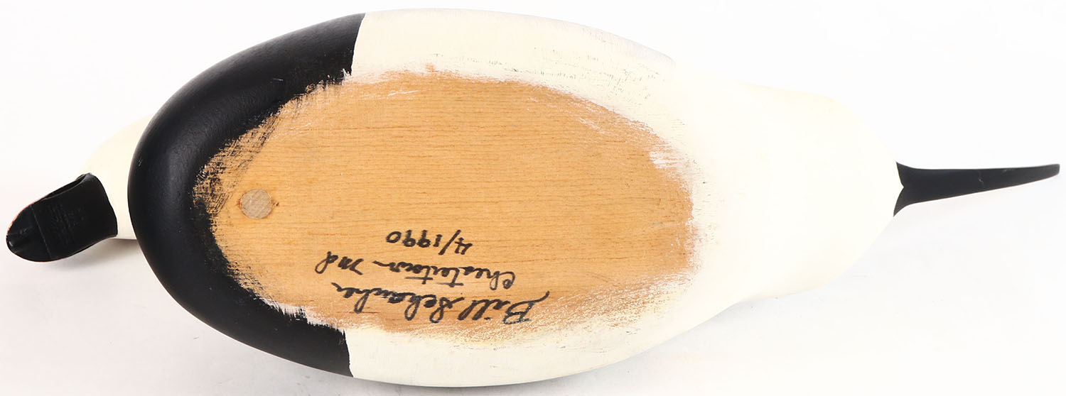 Old Squaw Drake by Bill Schauber, Chestertown, MD, glass eyes, solid wood, original paint, structurally excellent, signed on bottom. Grade: Excellent ++ - Value: 40 to 80