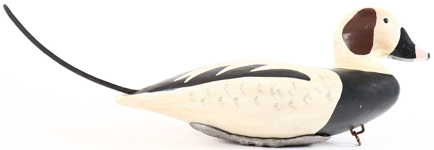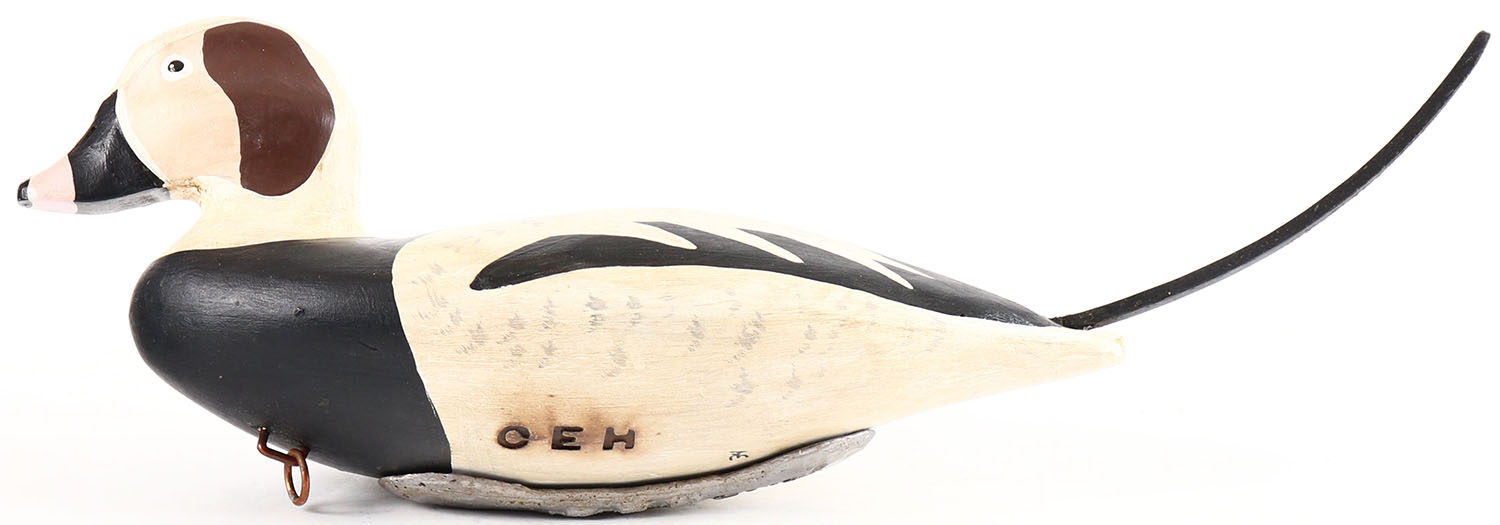 Old Squaw Drake by unknown maker with CEH brand, painted eyes, solid wood, original paint, structurally excellent. Grade: Excellent ++ - Value: 20 to 50