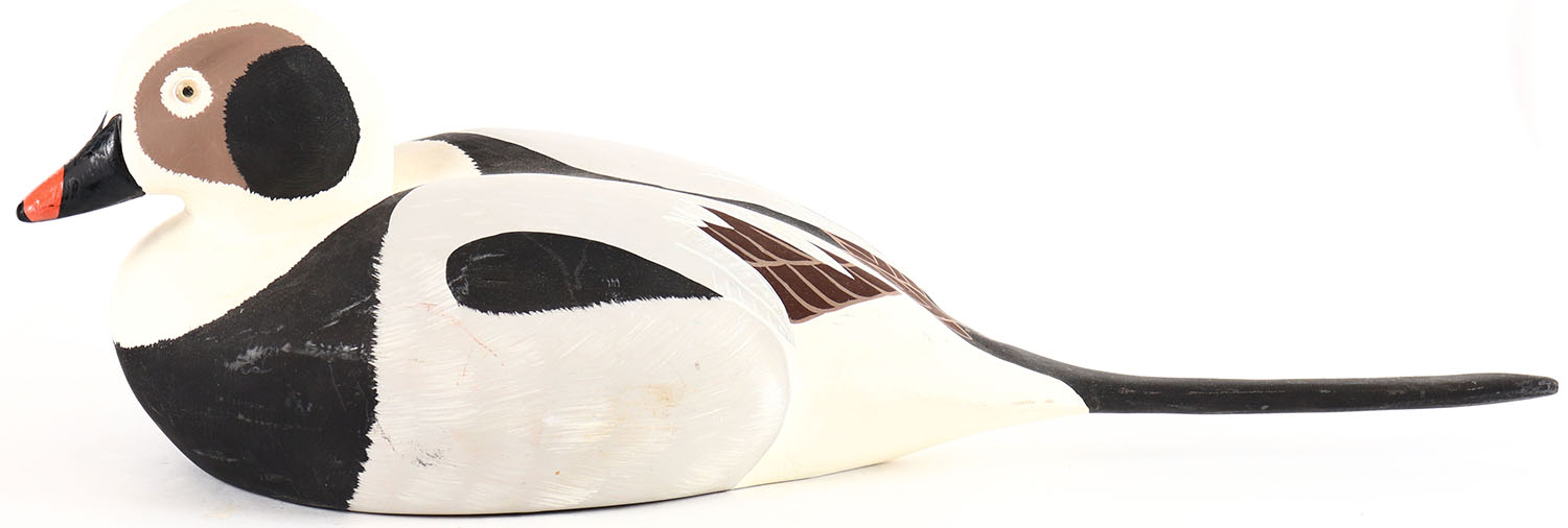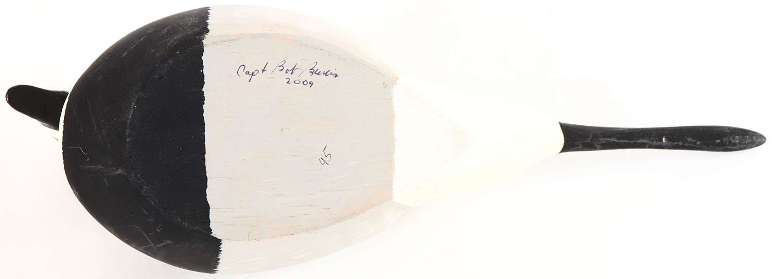 Old Squaw Duck Drake by Capt. Bob Burris, glass eyes, solid wood, original paint, structurally excellent, signed on bottom. Grade: Excellent + - Value: 20 to 40
