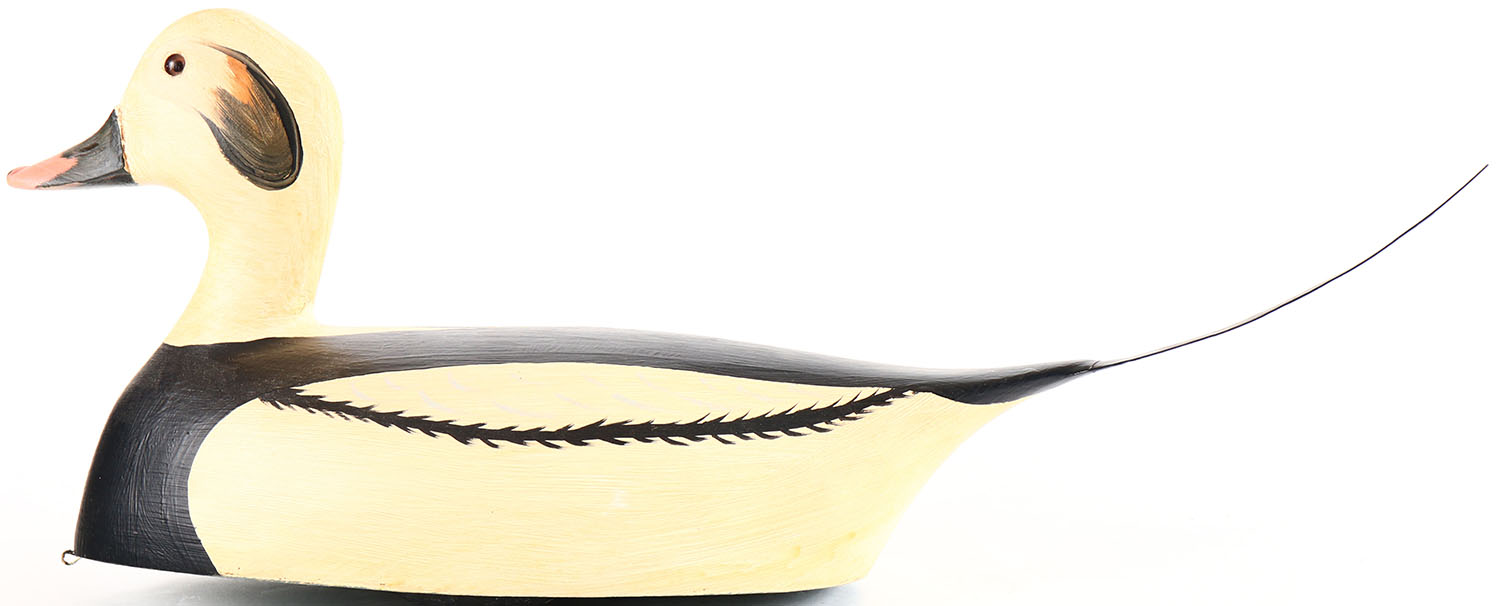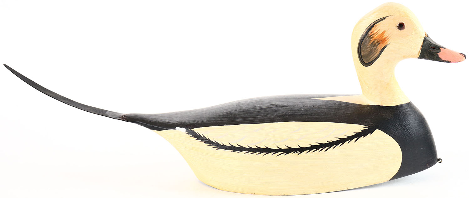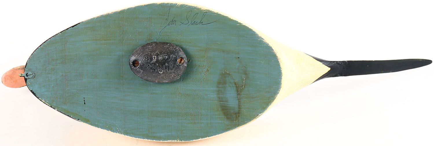 Old Squaw Duck Drake by Jim Slack, Pekin, IL, glass eyes, hollow wood, original paint, structurally excellent, signed on bottom. Grade: Excellent - Value: 40 to 80