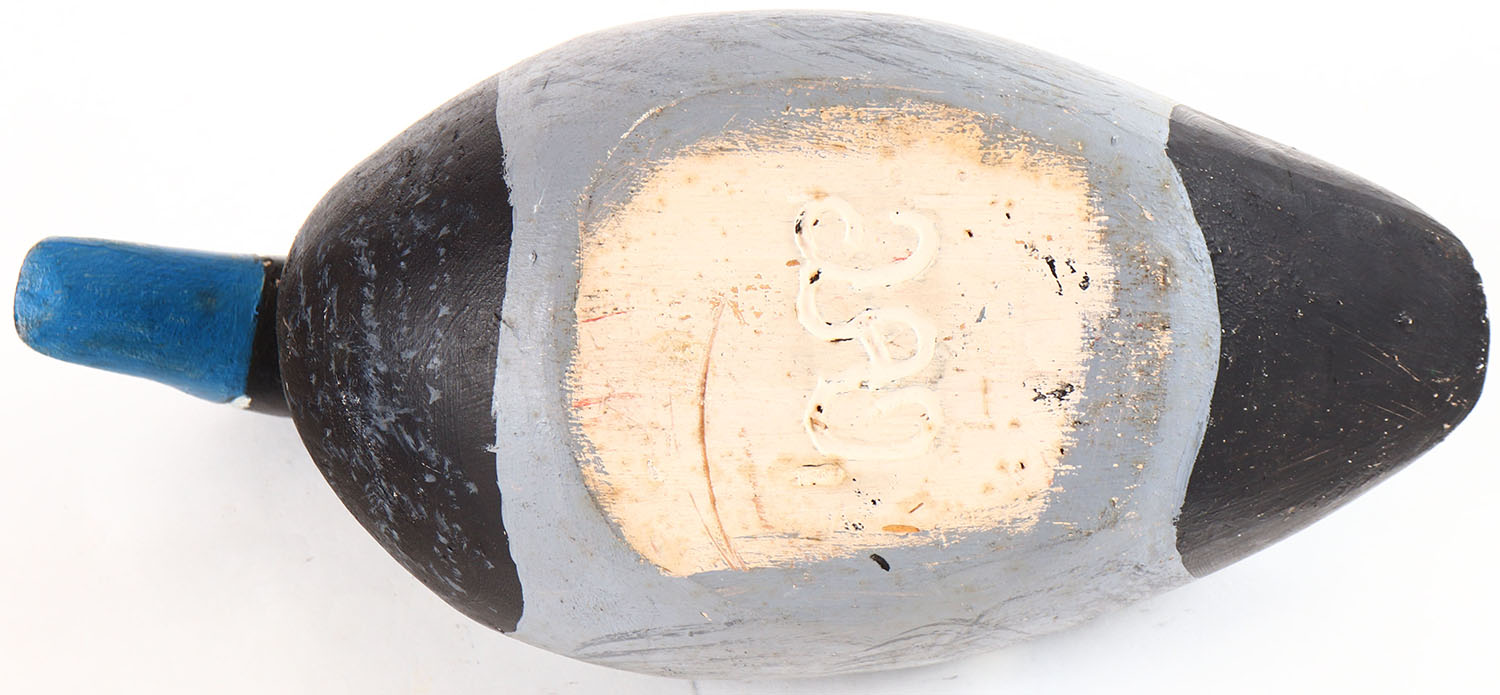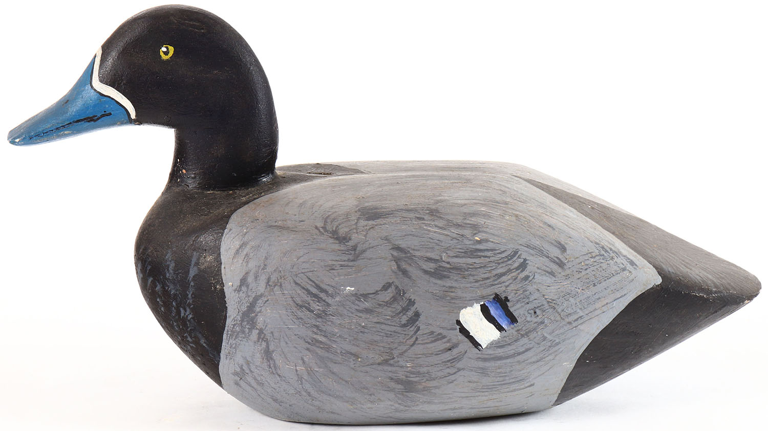 Bluebill Drake by unknown maker, painted eyes, hollow wood, repainted, structurally excellent. Grade: Excellent + - Value: 20 to 40