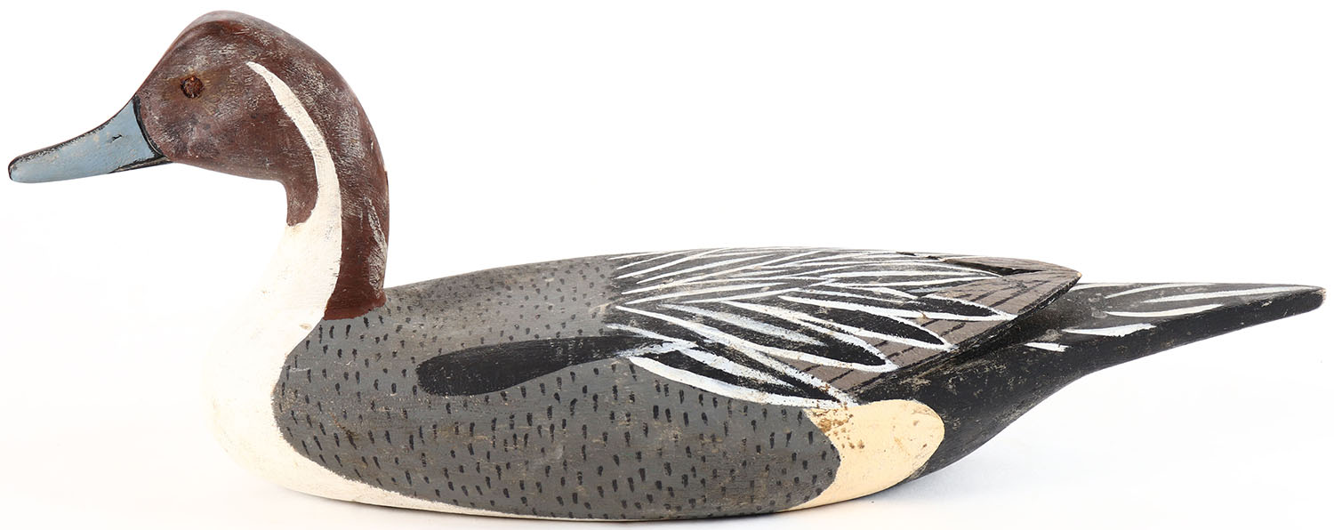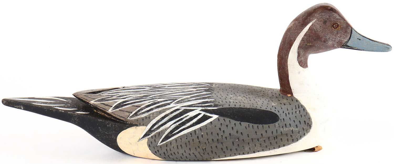 Pintail Drake by signed C PACKER on weight, glass eyes, solid wood, original paint, structurally excellent. Grade: Excellent + - Value: 30 to 60