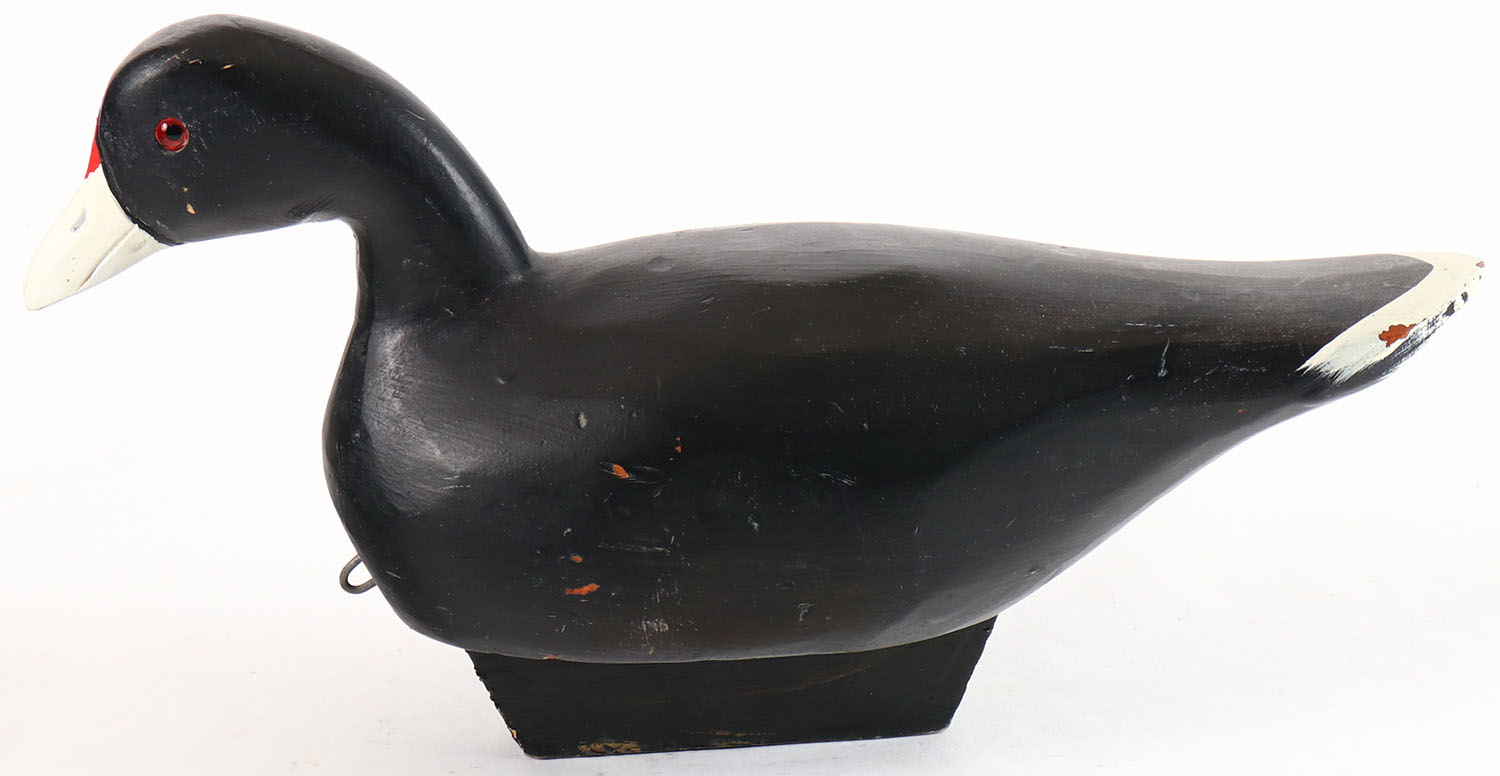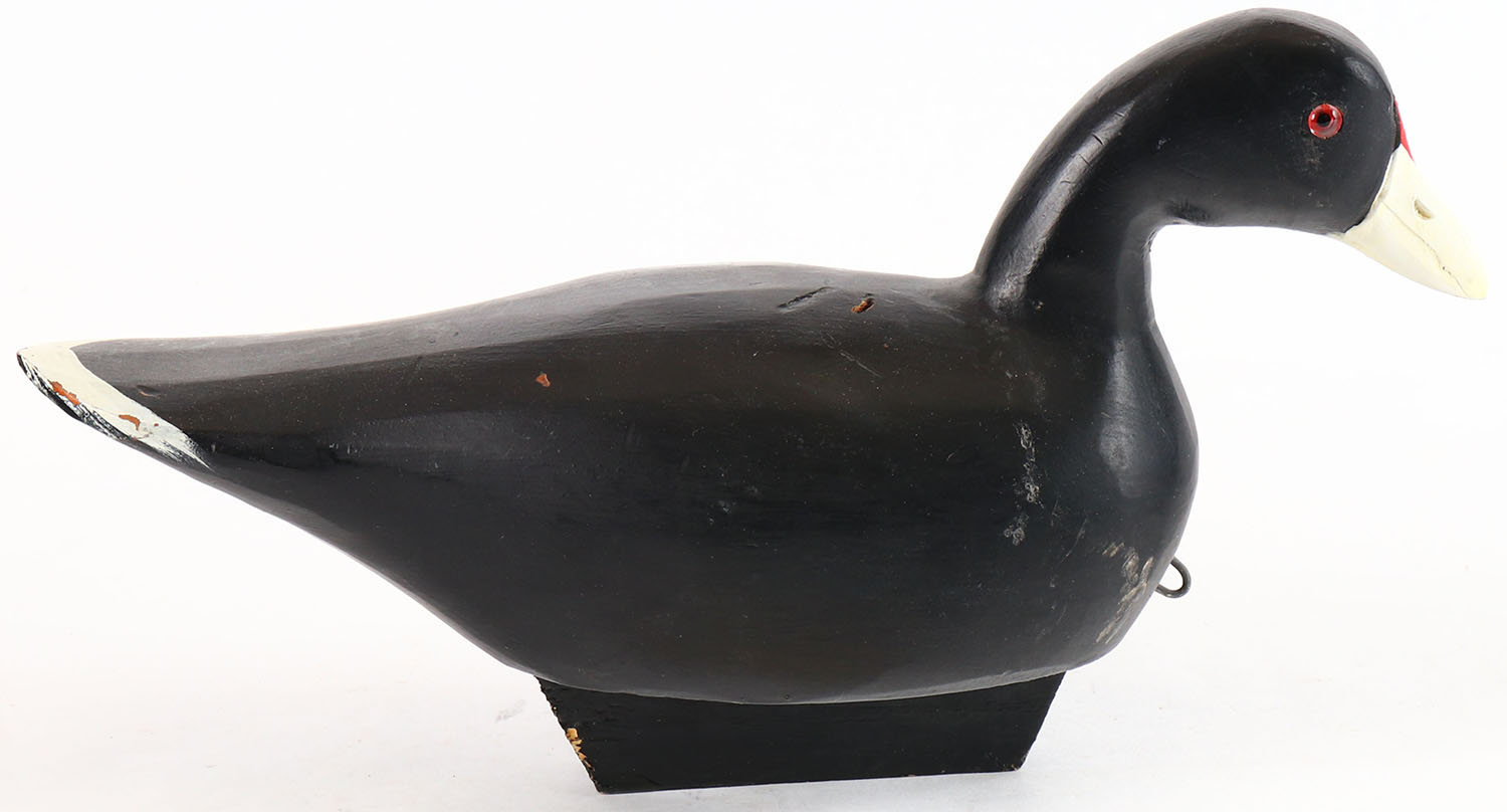 Coot by unknown maker, glass eyes, solid wood, original paint, structurally excellent. Grade: Excellent + - Value: 20 to 40