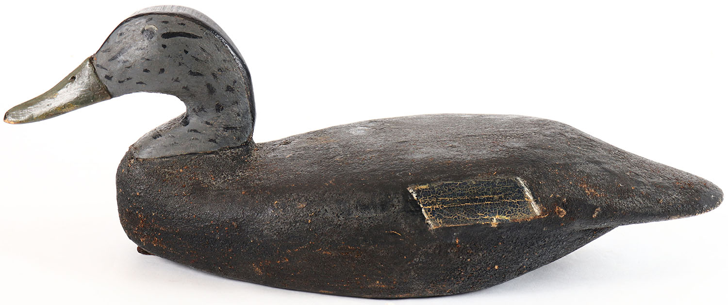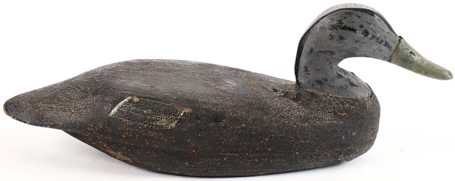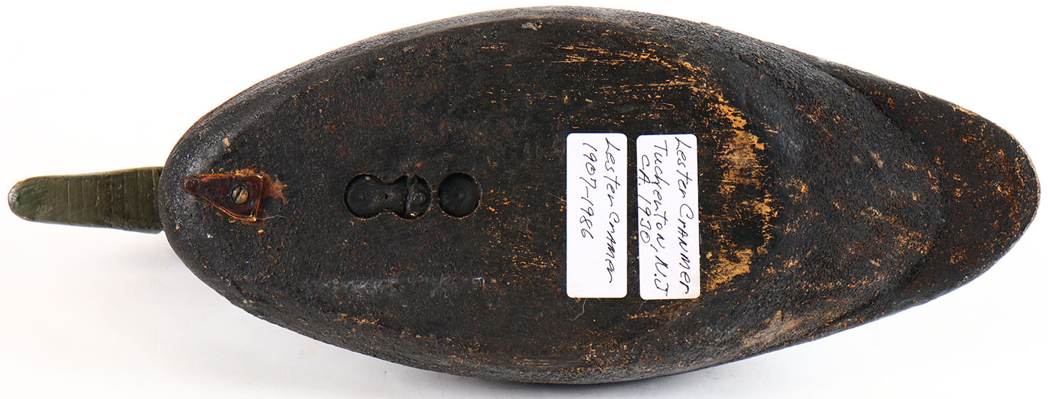 Black Duck attributed to Lester Cranmer, Tuckerton, N.J. painted eyes, solid wood, head possibly added, body possibly original paint, structurally excellent, signed on bottom. Grade: Excellent - Value: 30 to 60