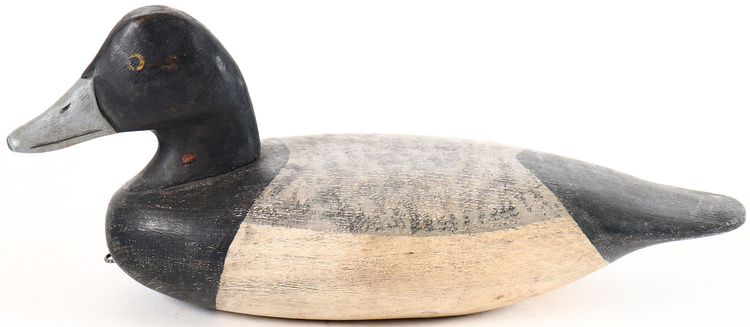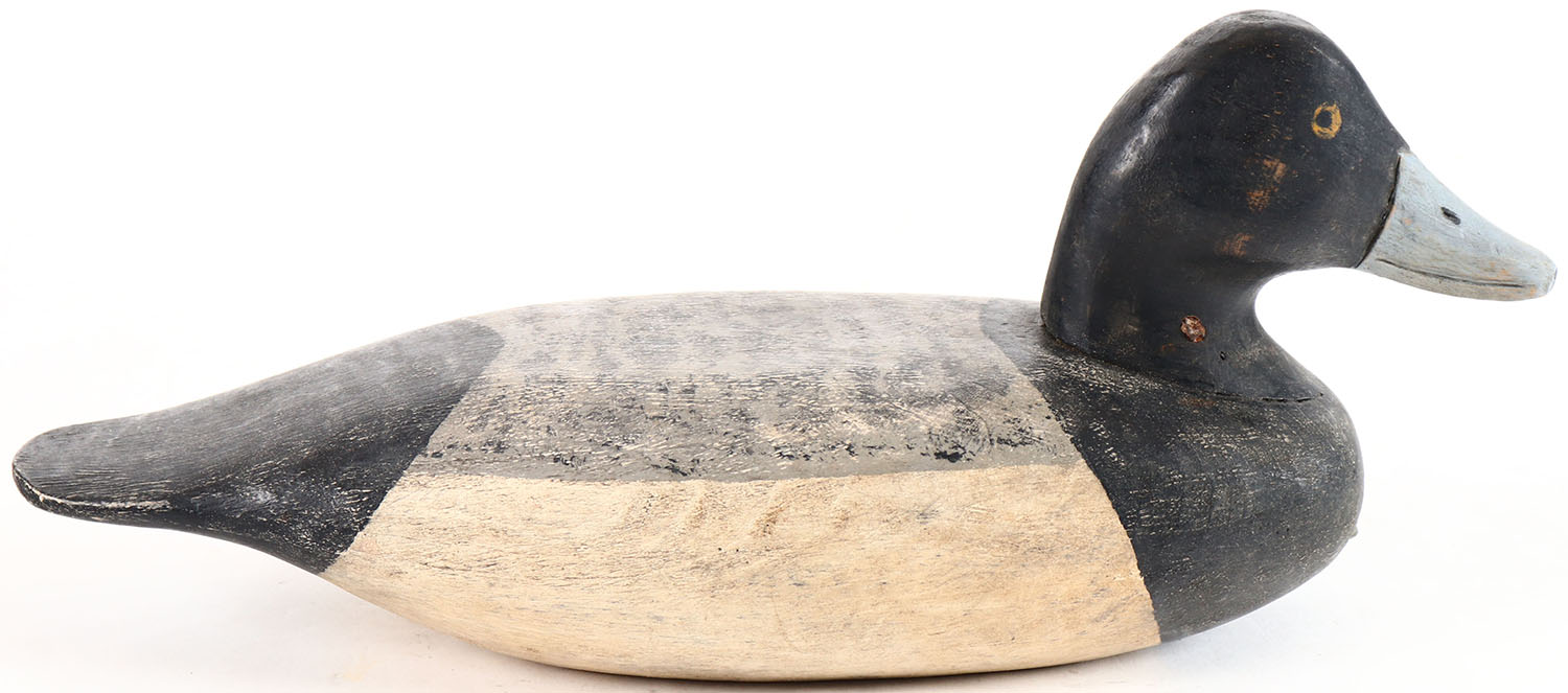 Bluebill Drake by Bob Booth, Chincoteague Island, VA. Painted eyes, solid wood, original paint, structurally excellent, signed on bottom by BOB BOOTH. Grade: Excellent - Value: 20 to 40