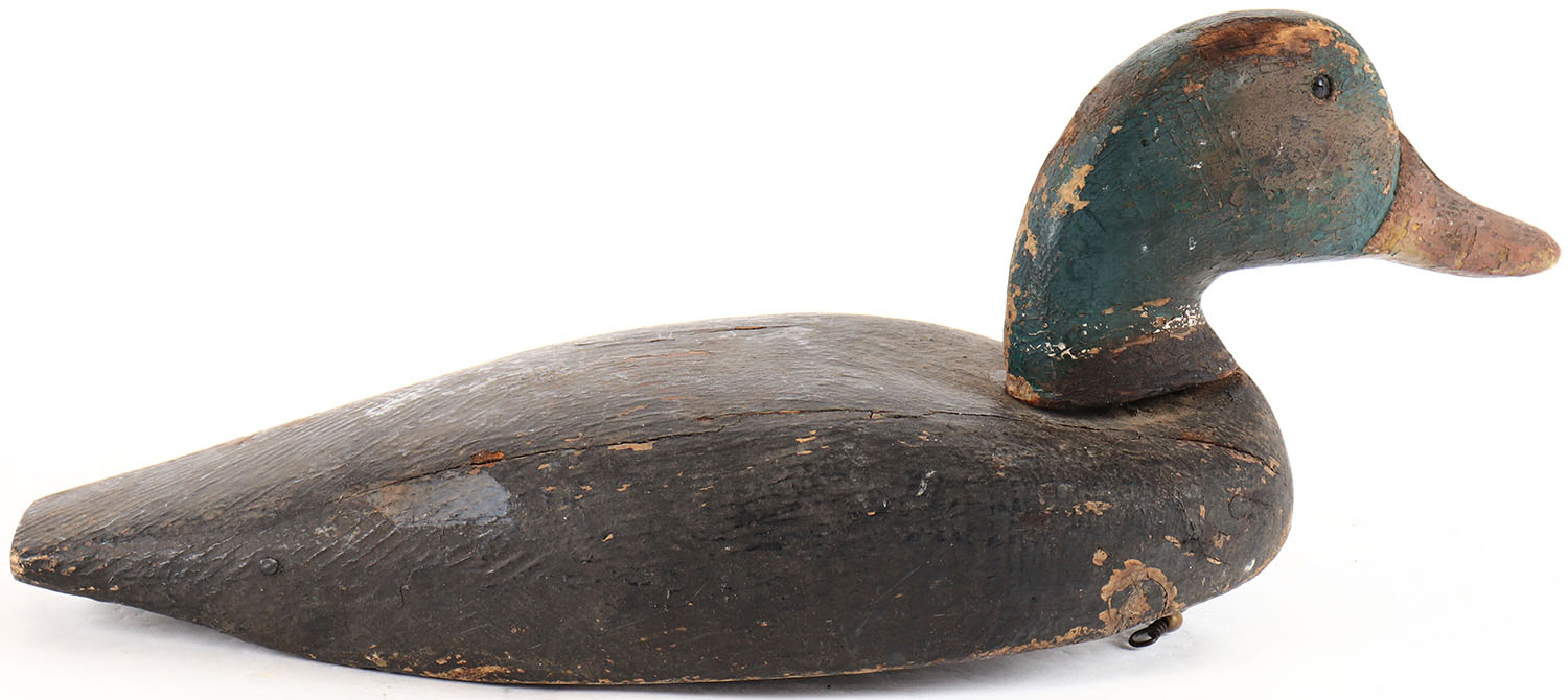 Mallard Drake by unknown maker, glass eyes, solid wood, original paint. Grade: Very Good - Value: 10 to 30