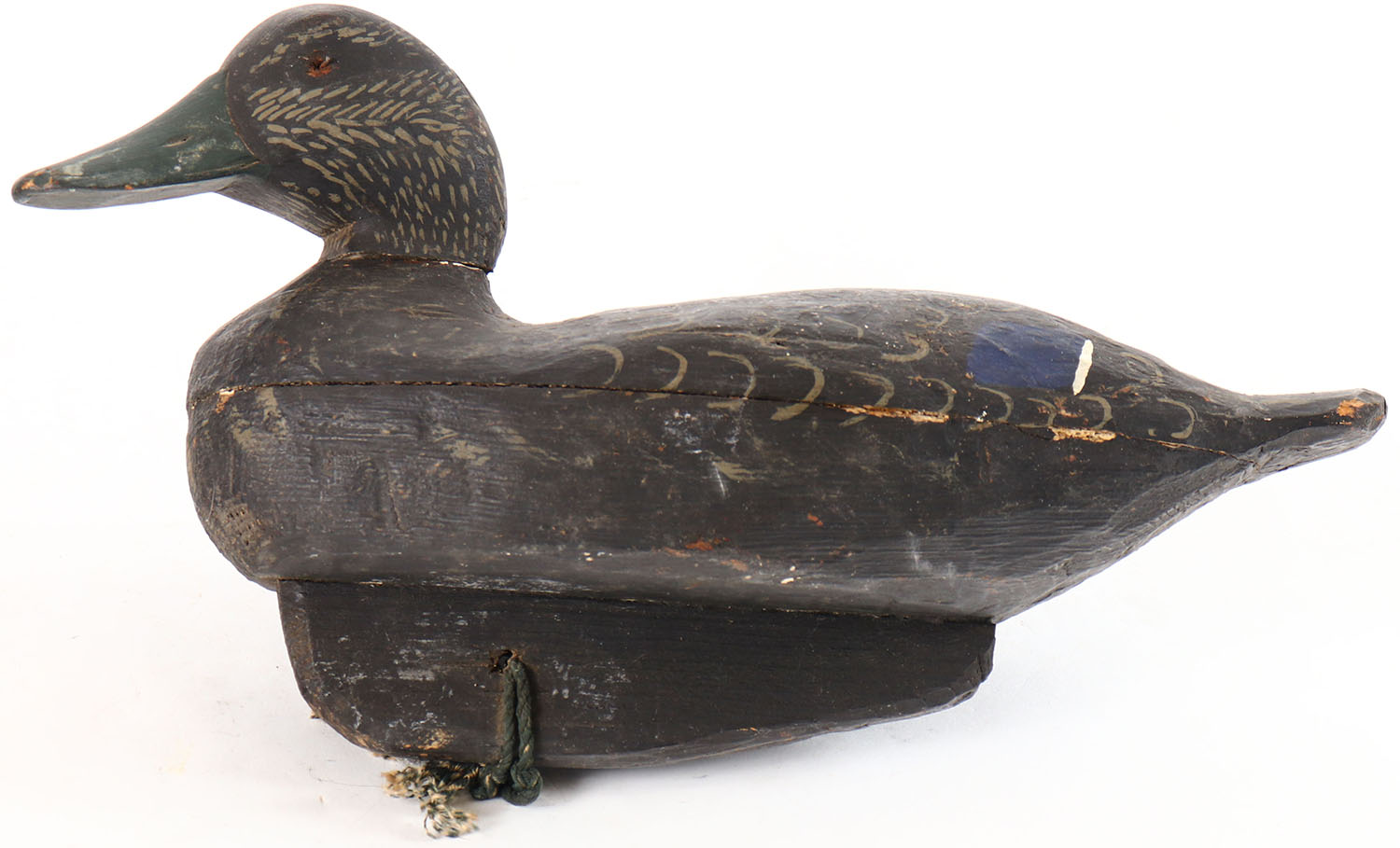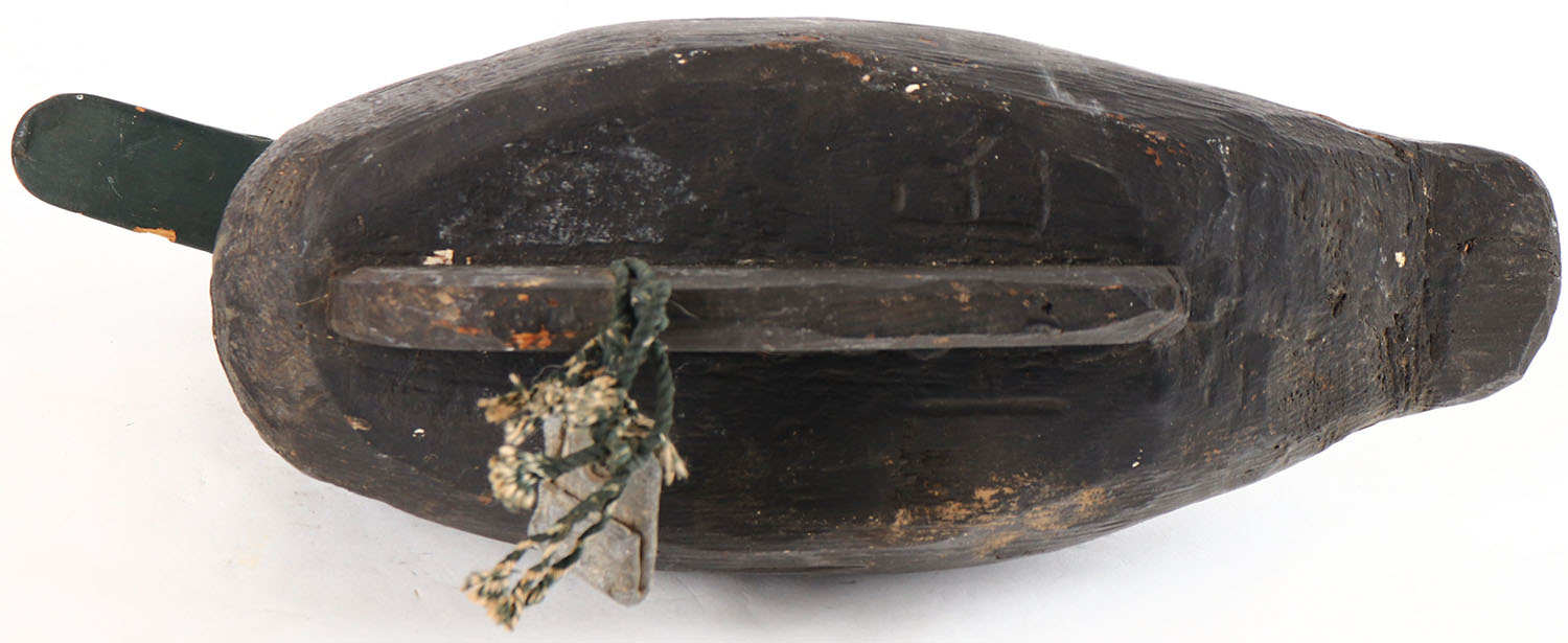 Black Duck by unknown maker, glass eyes, solid wood, original paint, head is loose. Grade: Very Good + - Value: 20 to 40