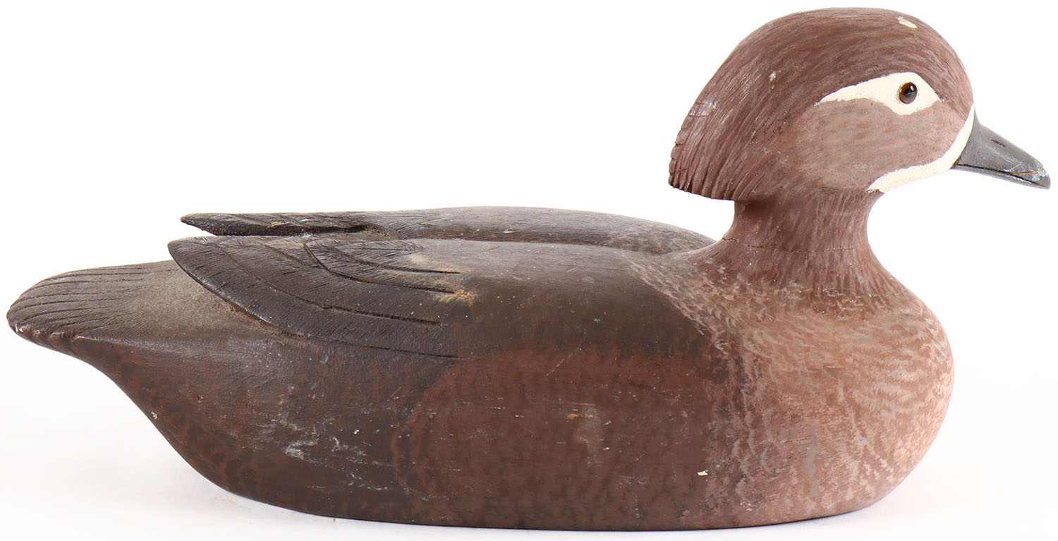 Woodduck Hen by Ray Unterwagner?, glass eyes, solid wood, original paint, structurally excellent, signed on bottom. Grade: Excellent ++ - Value: 20 to 40