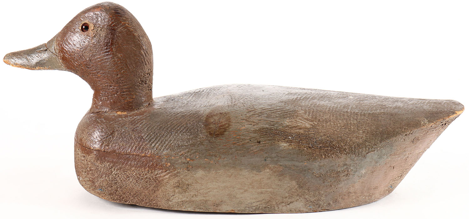 Canvasback Hen by unknown maker, glass eyes, solid wood, original paint, structurally excellent. Grade: Excellent - Value: 20 to 40