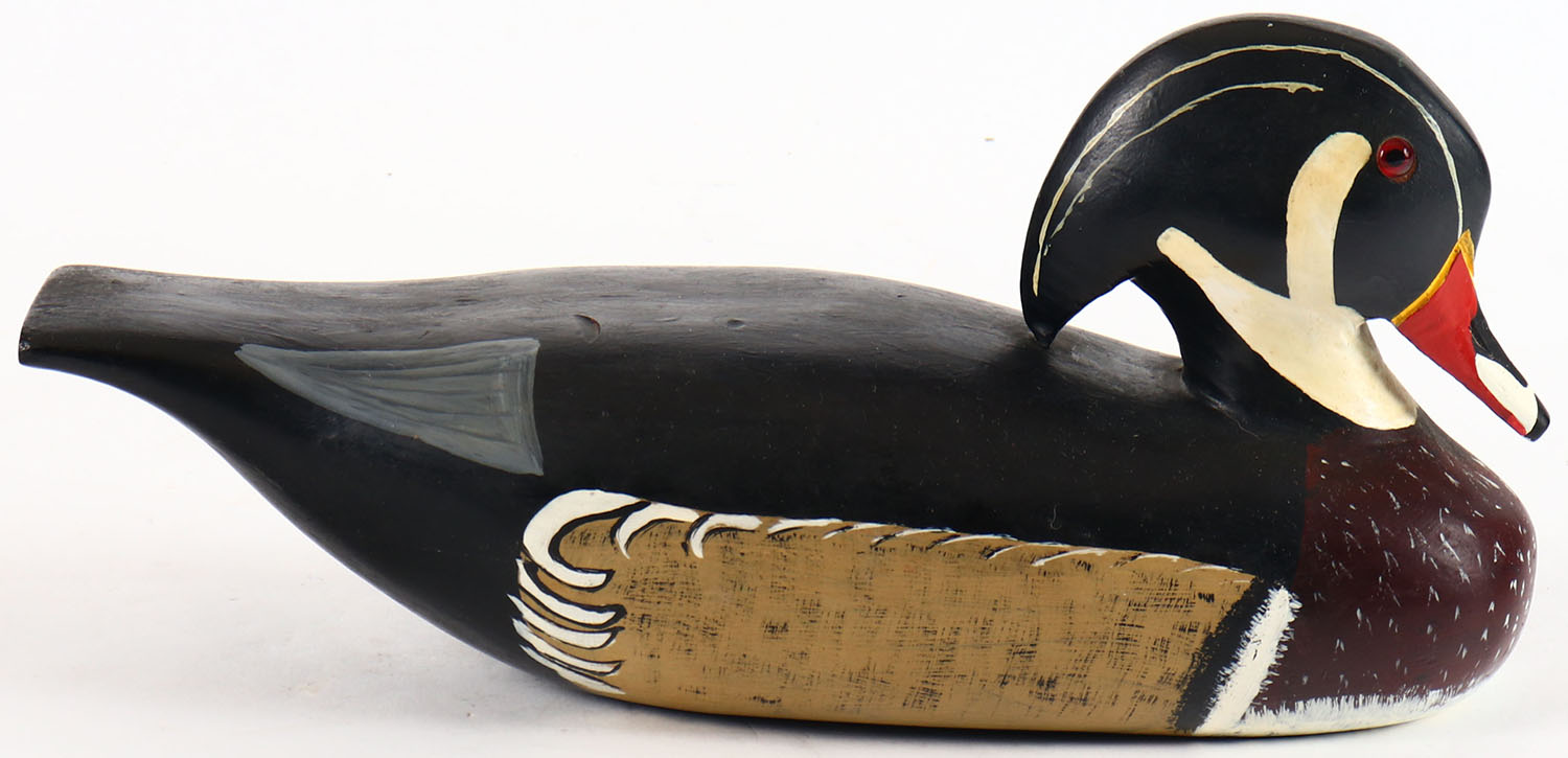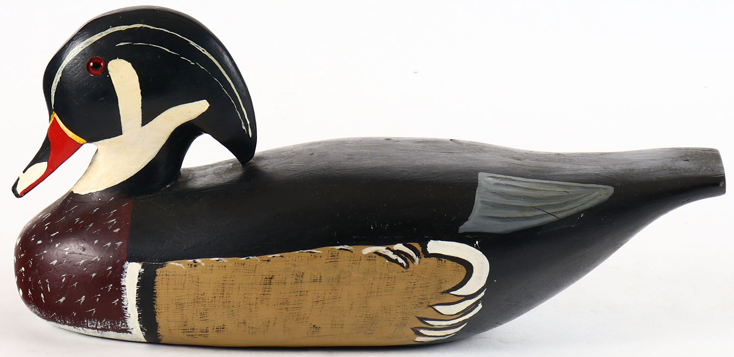 Woodduck Drake by unknown maker, glass eyes, glass eyes, solid wood, original paint, structurally excellent. Grade: Excellent ++ - Value: 10 to 30