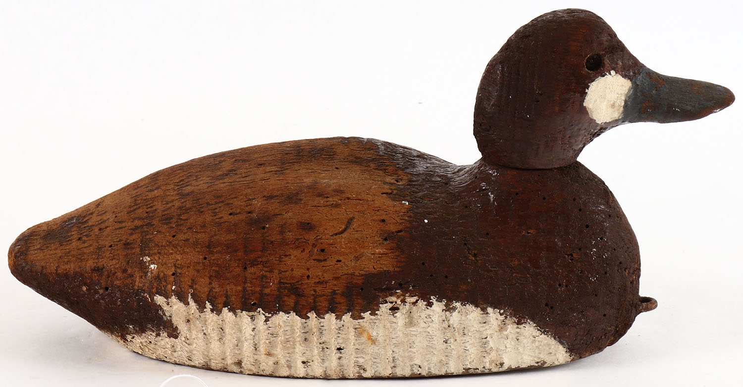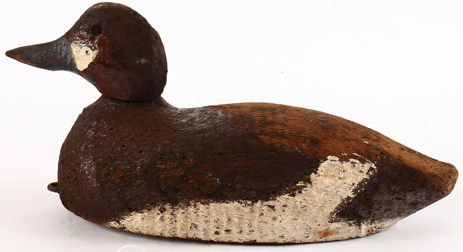 Bluebill Hen by PADCO, Pascagoula, MS, no eyes, solid wood, repainted, head is loose. Grade: Very Good ++ - Value: 10 to 30