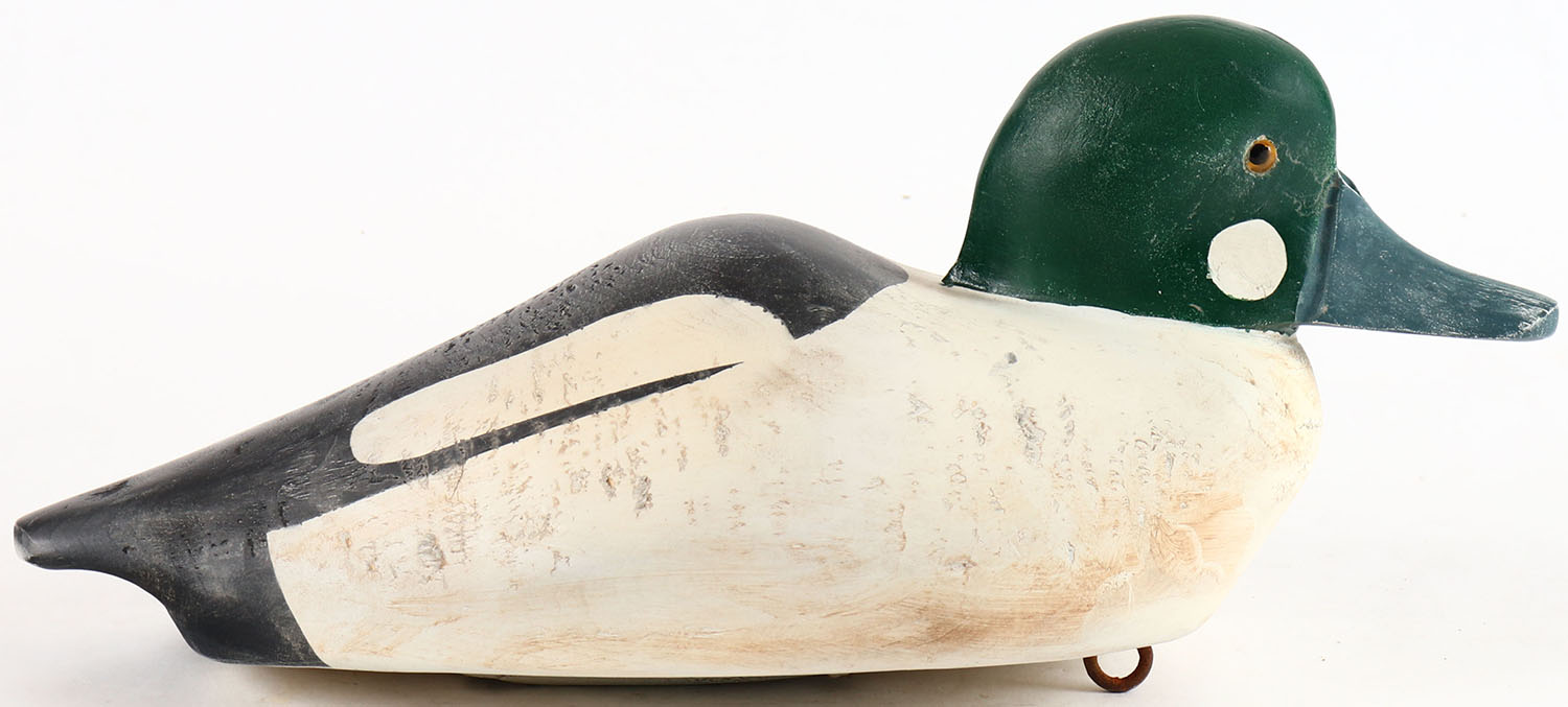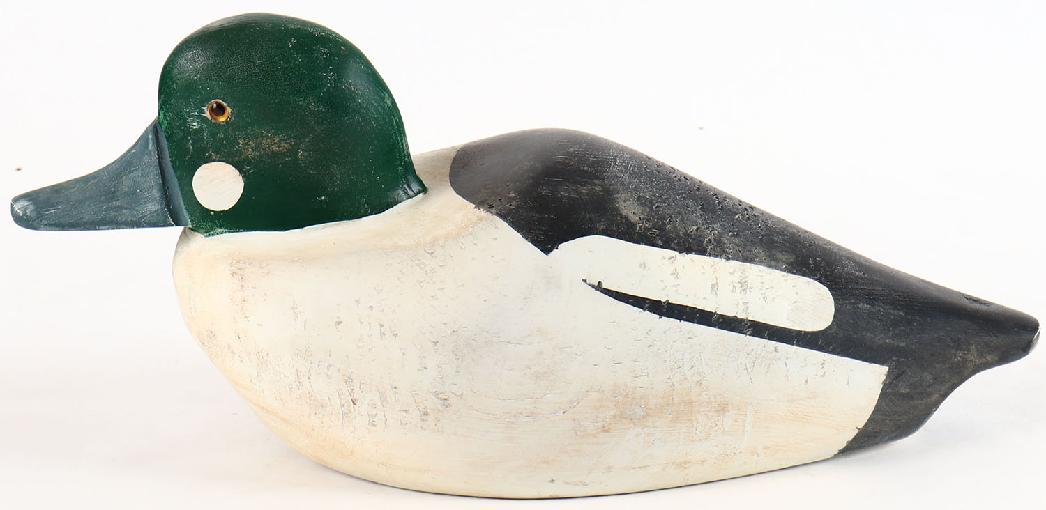 Goldeneye Drake by unknown maker, glass eyes, solid wood, original paint, structurally excellent. Grade: Excellent + - Value: 10 to 30