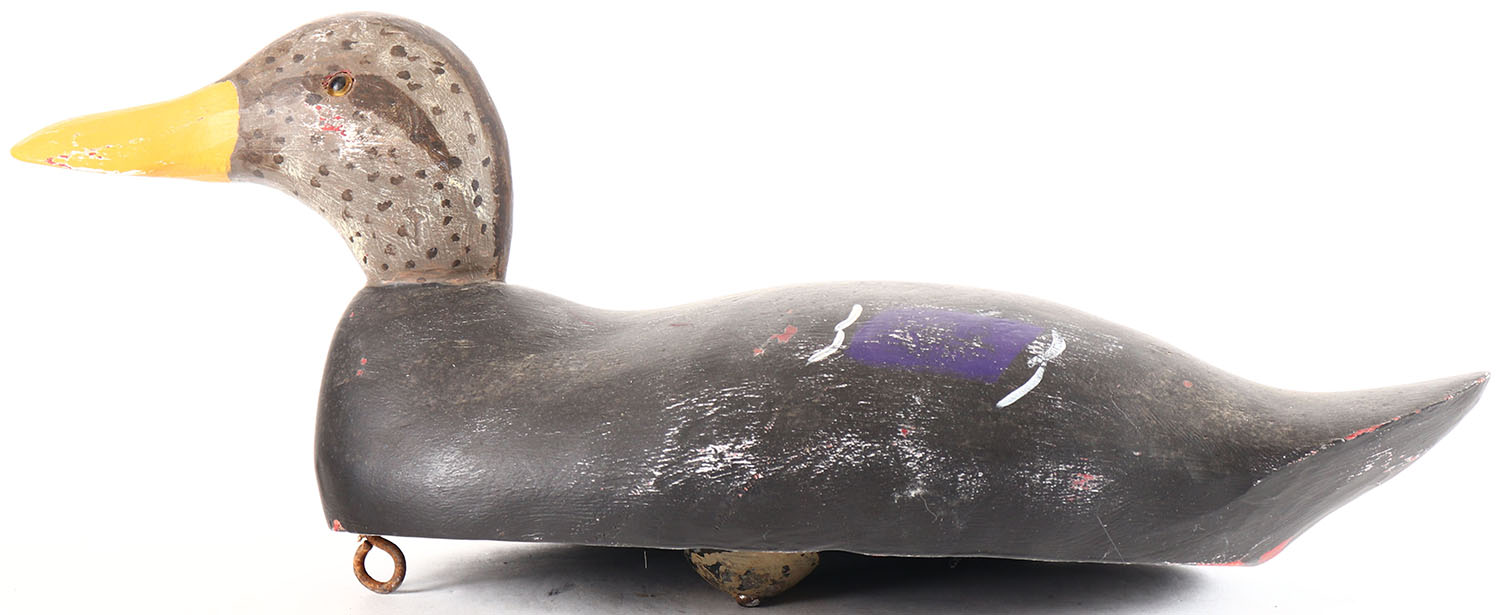Black Duck by a Pascagoula, MS factory, glass eyes, hollowed out body, repainted, structurally excellent. Grade: Very Good ++ - Value: 10 to 20
