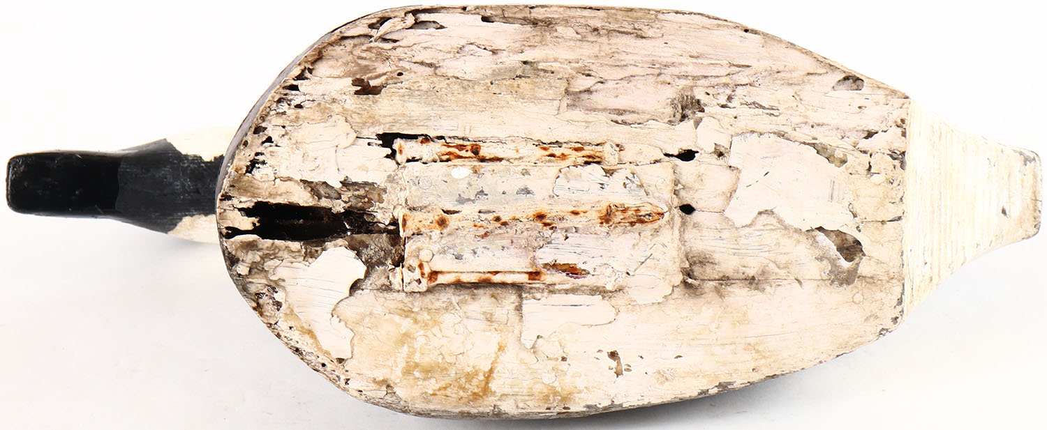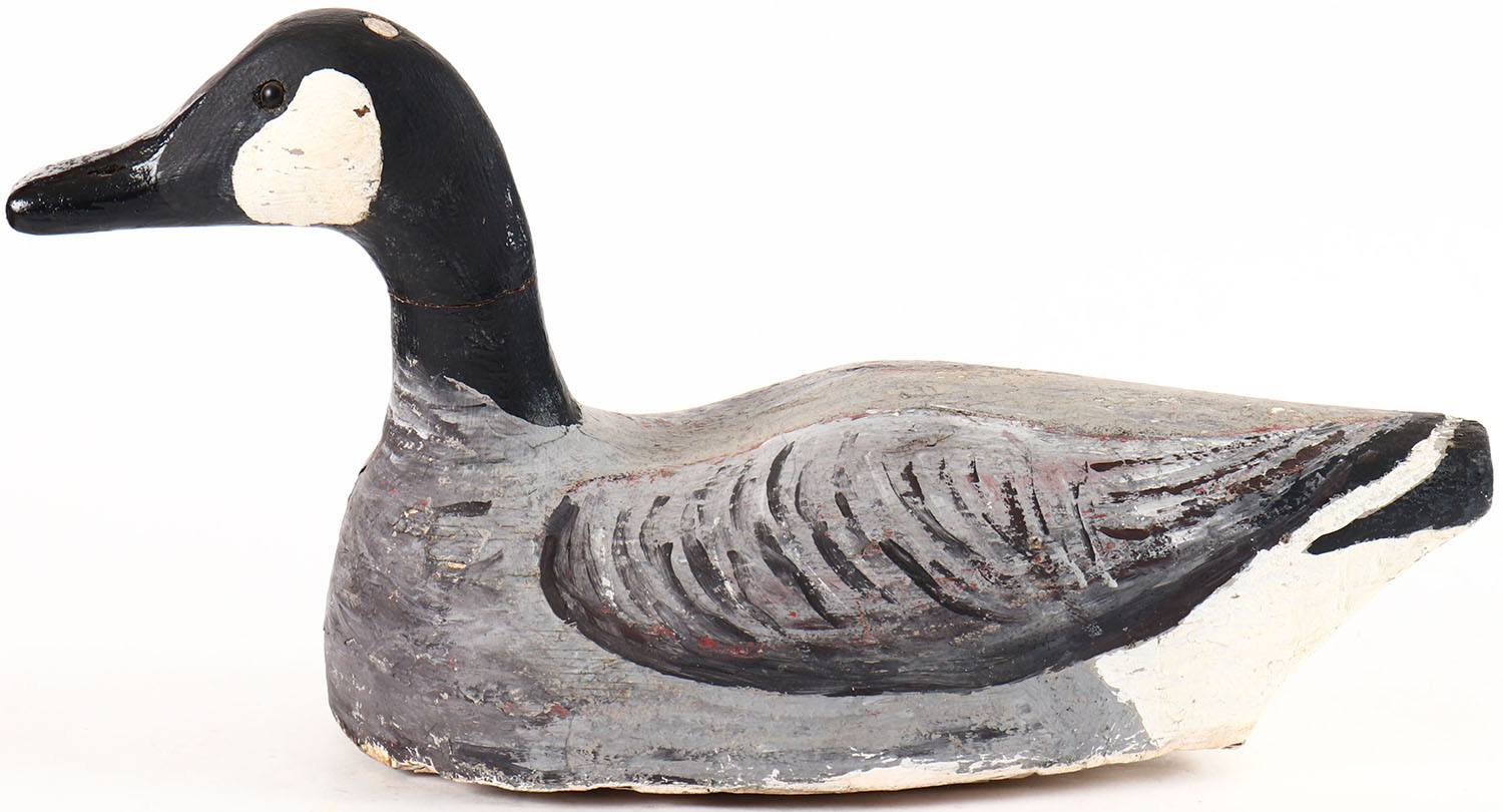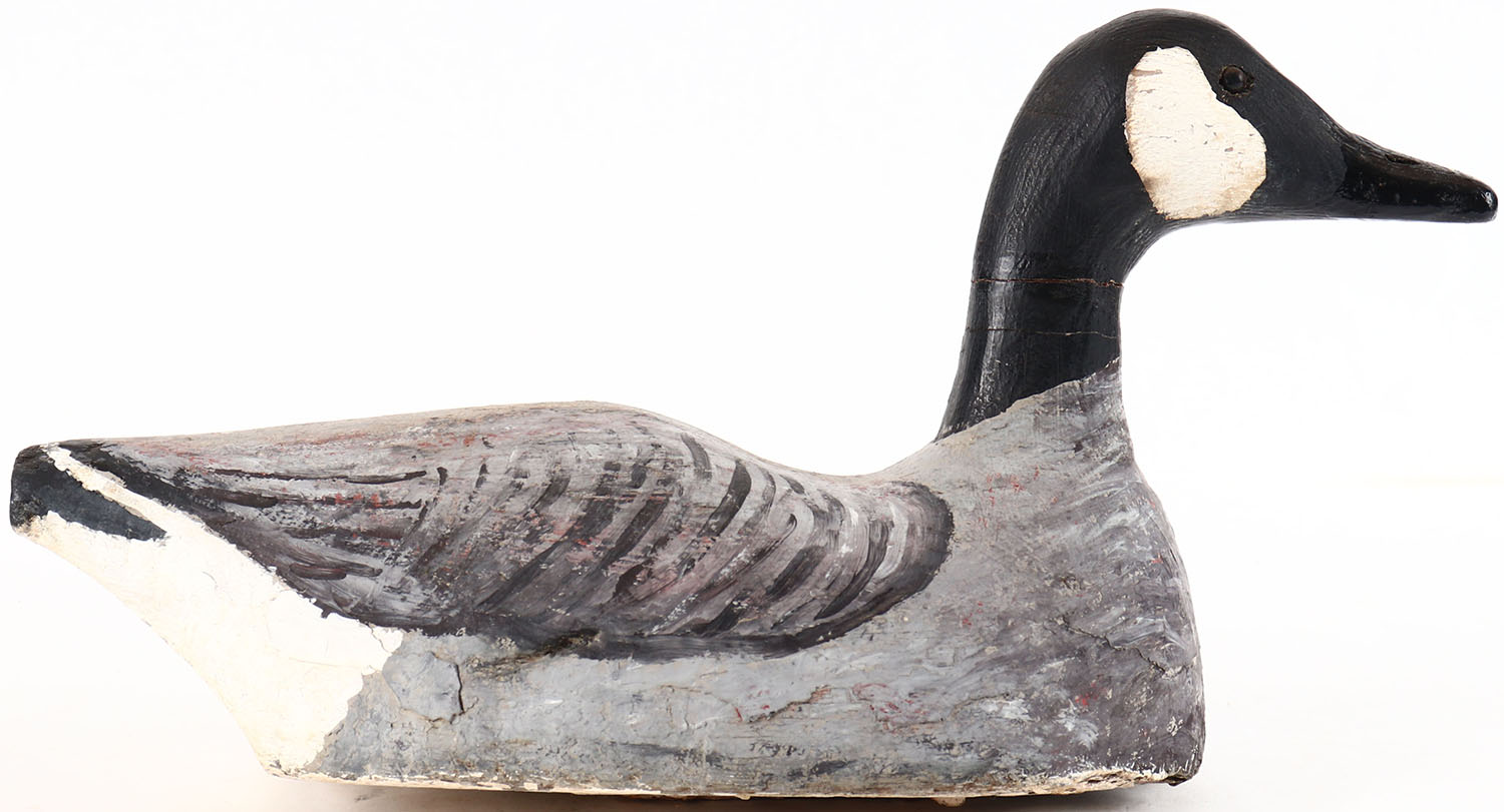 Canada Goose by unknown maker, glass eyes, solid wood, working repaint, wear to body, has age cracks. Grade: Very Good + - Value: 20 to 40