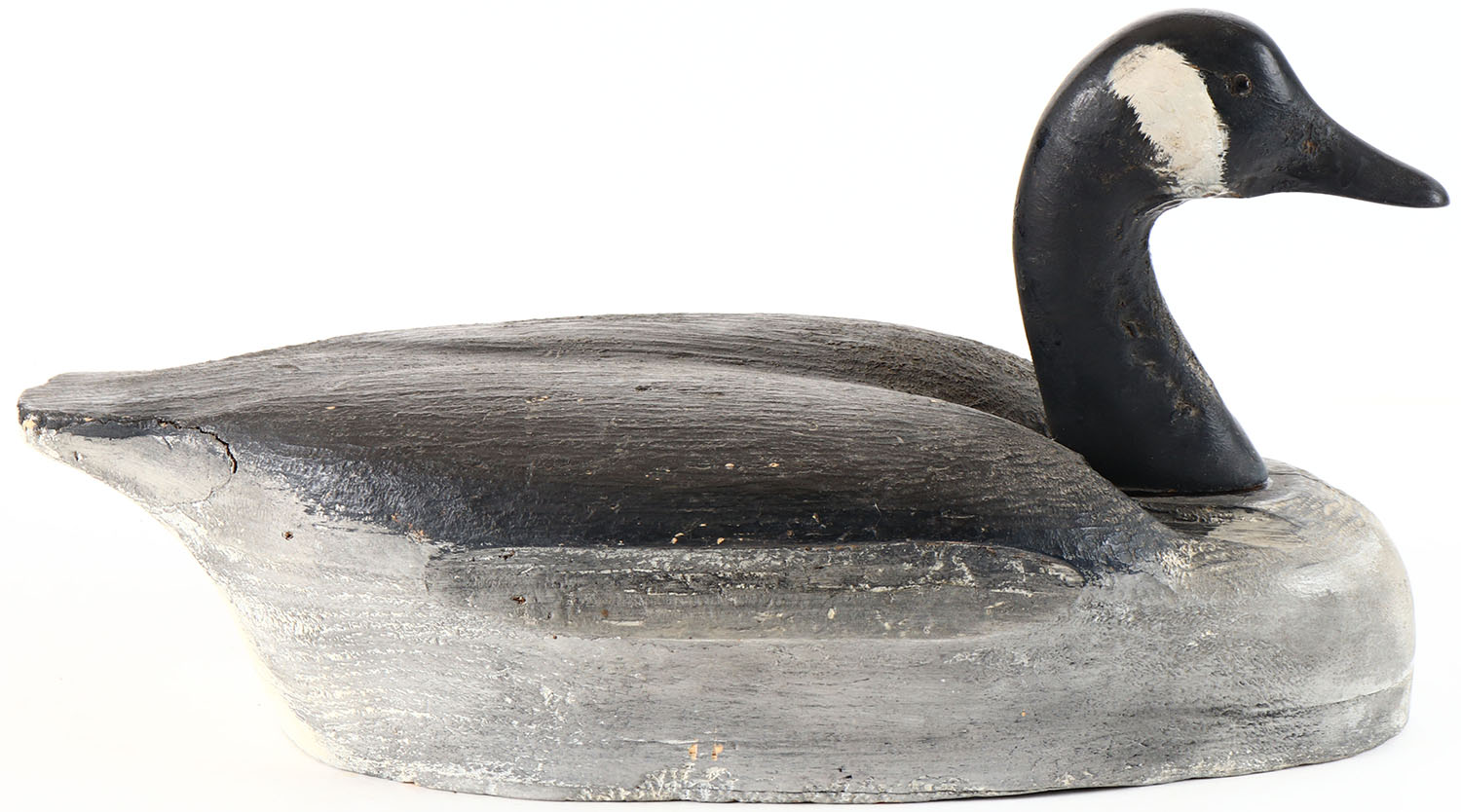 Canada Goose by Herters Decoy Co., Waseca, MN, glass eyes, solid wood, repainted, shot size dents in neck, excellent. Grade: Very Good ++ - Value: 10 to 20