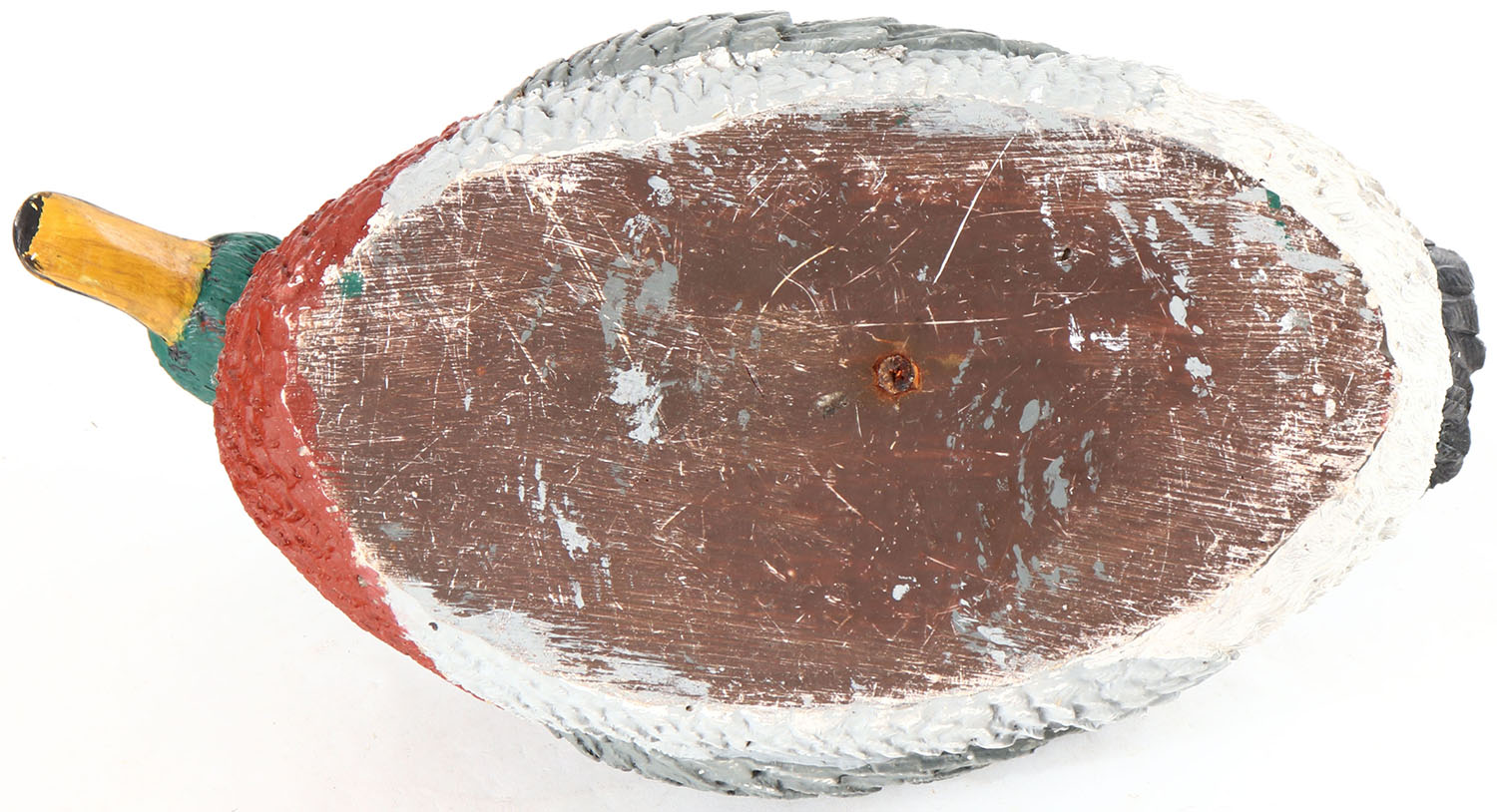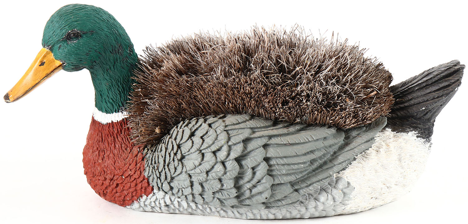 Mallard Drake golf shoe cleaner, by unknown maker, glass eyes, solid wood, original paint, structurally excellent. Grade: Excellent - Value: 6 to 20