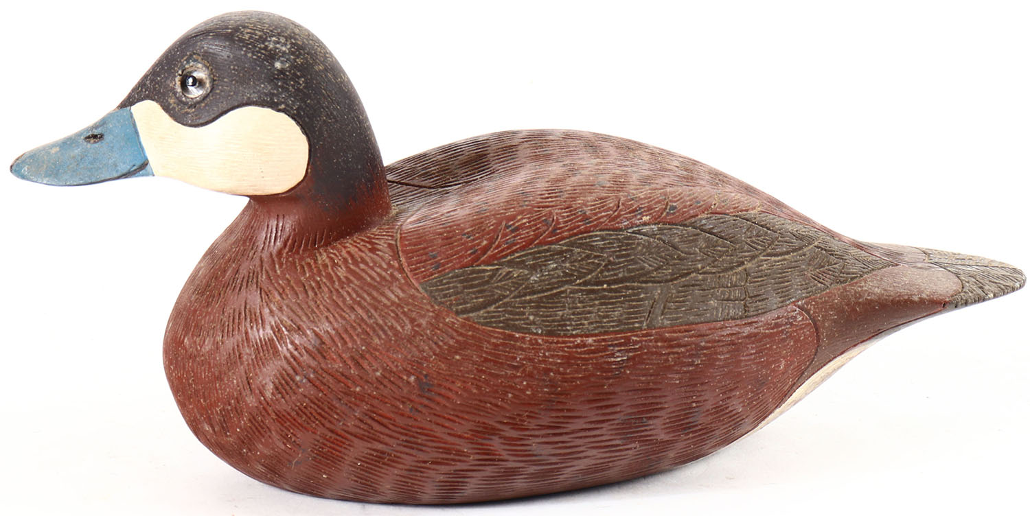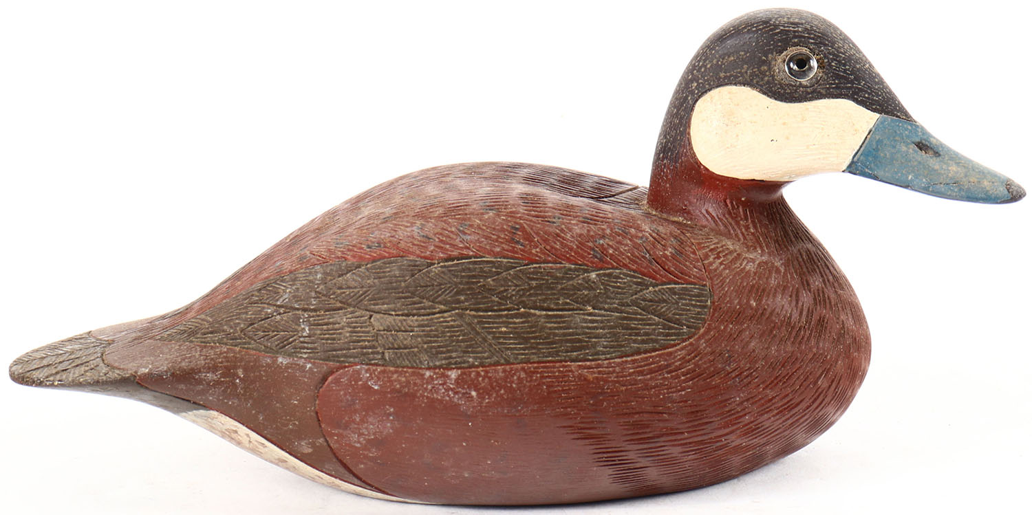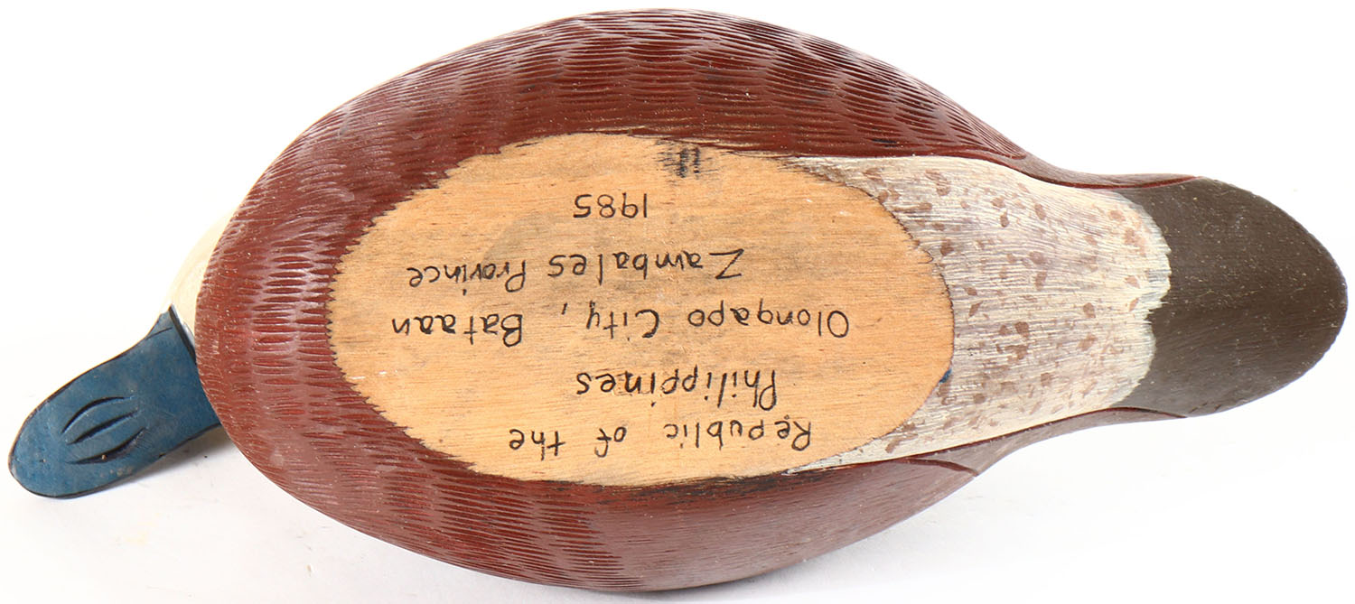 Ruddy Duck by unknown maker, Republic of the Philippines, Olongapo City, Bataan, Zambales Prorince, glass eyes, solid wood, original paint, structurally excellent. Grade: Excellent - Value: 2 to 20