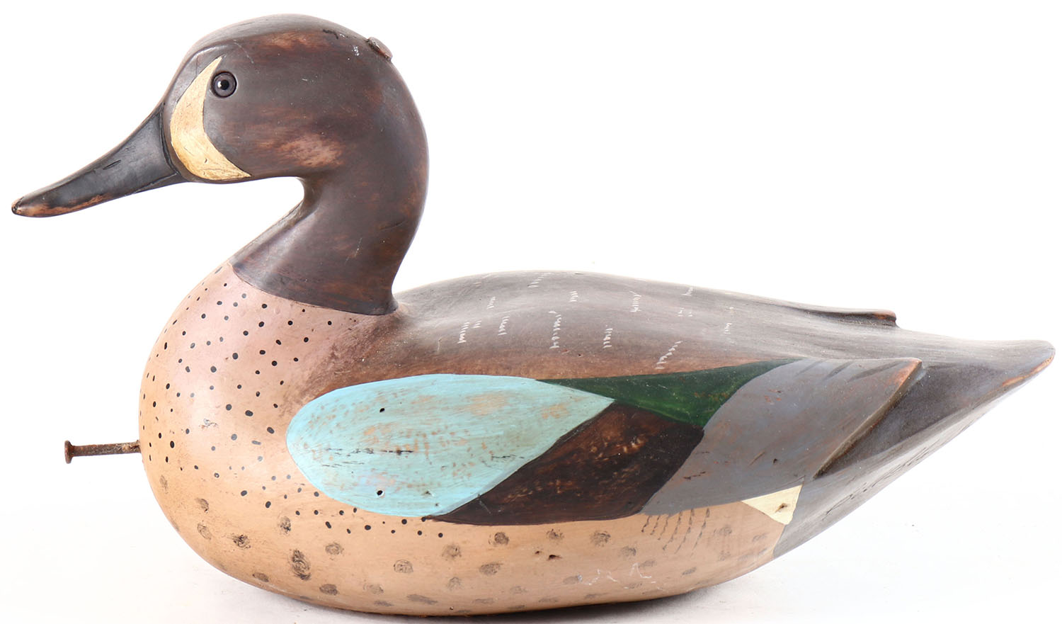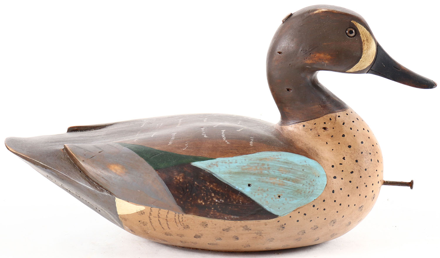 Blue Winged Teal Drake by Black Slough Decoy Company, Bill Black Jr.,glass eyes, solid wood, original paint, structurally excellent. Grade: Excellent + - Value: 10 to 40