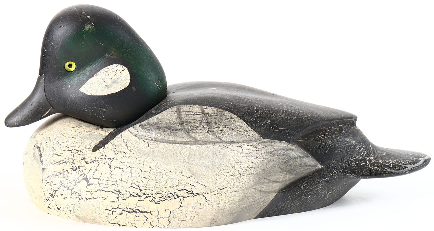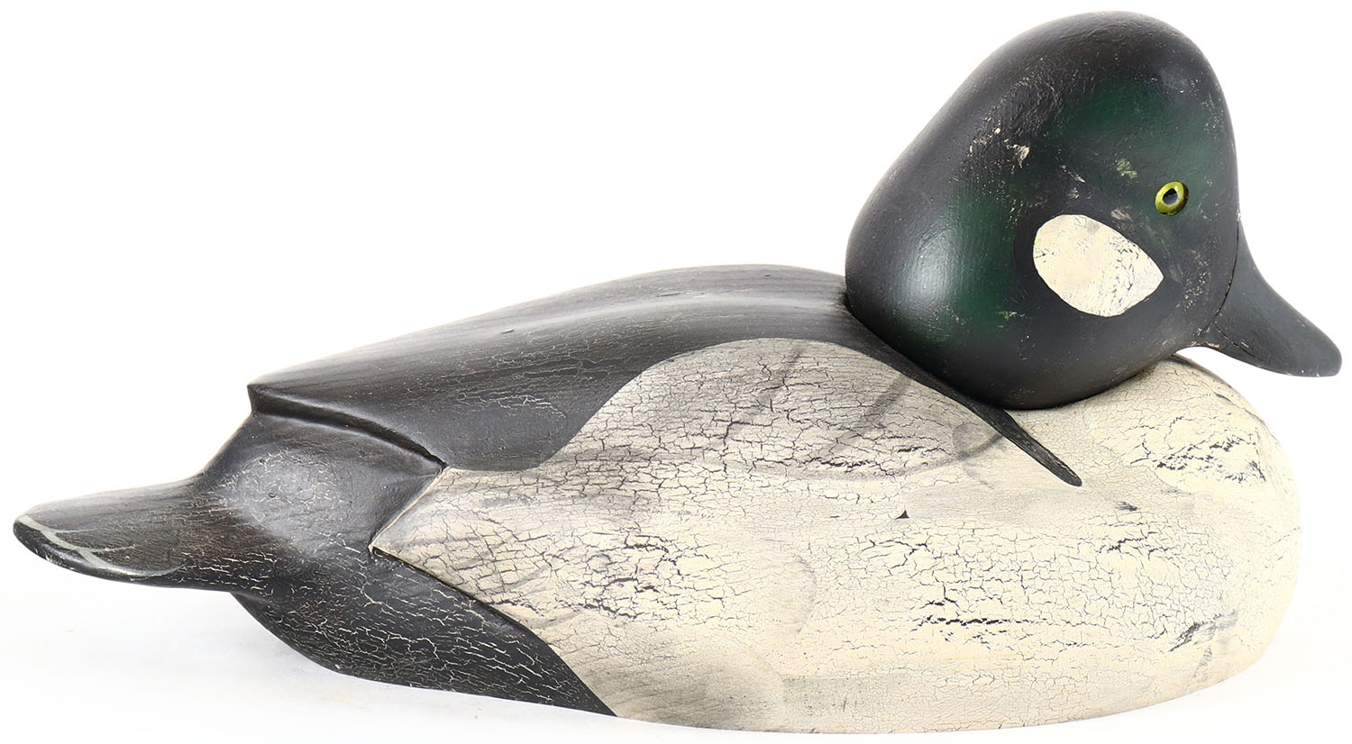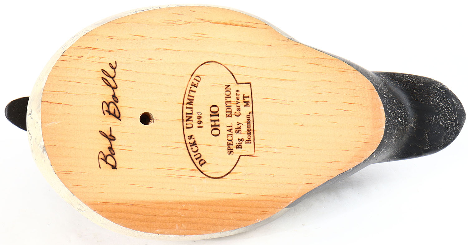 Goldeneye Drake by Bob Bolle, Ducks Unlimited, Ohio, Special Edition, Big Sky Carvers, Bozeman, MT. glass eyes, solid wood, original paint, wear to body. Grade: Very Good ++ - Value: 20 to 40