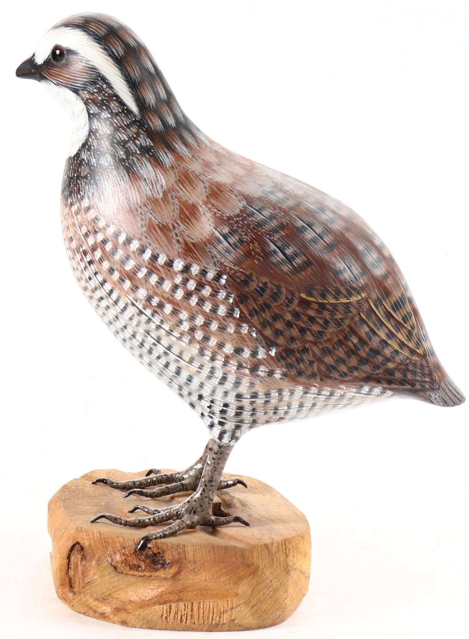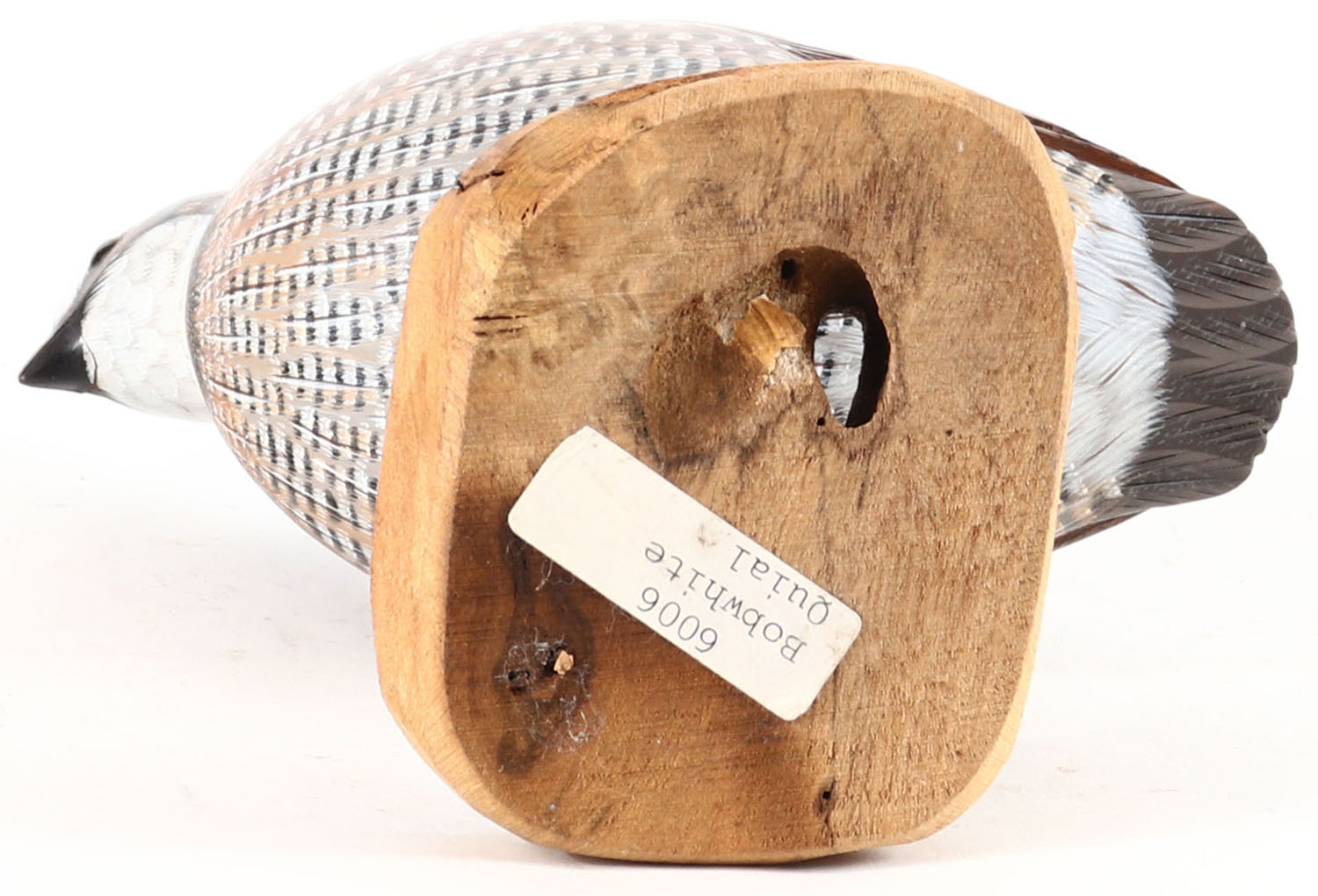 Bobwhite Quail by unknown maker, glass eyes, solid wood, original paint, structurally excellent. Grade: Excellent + - Value: 6 to 20