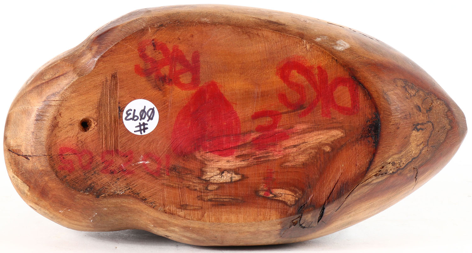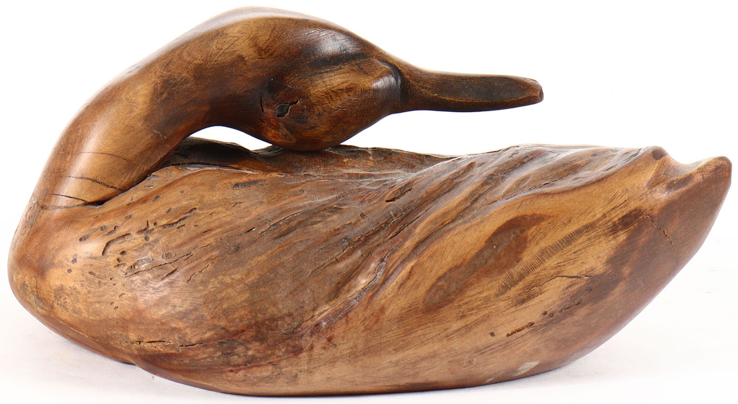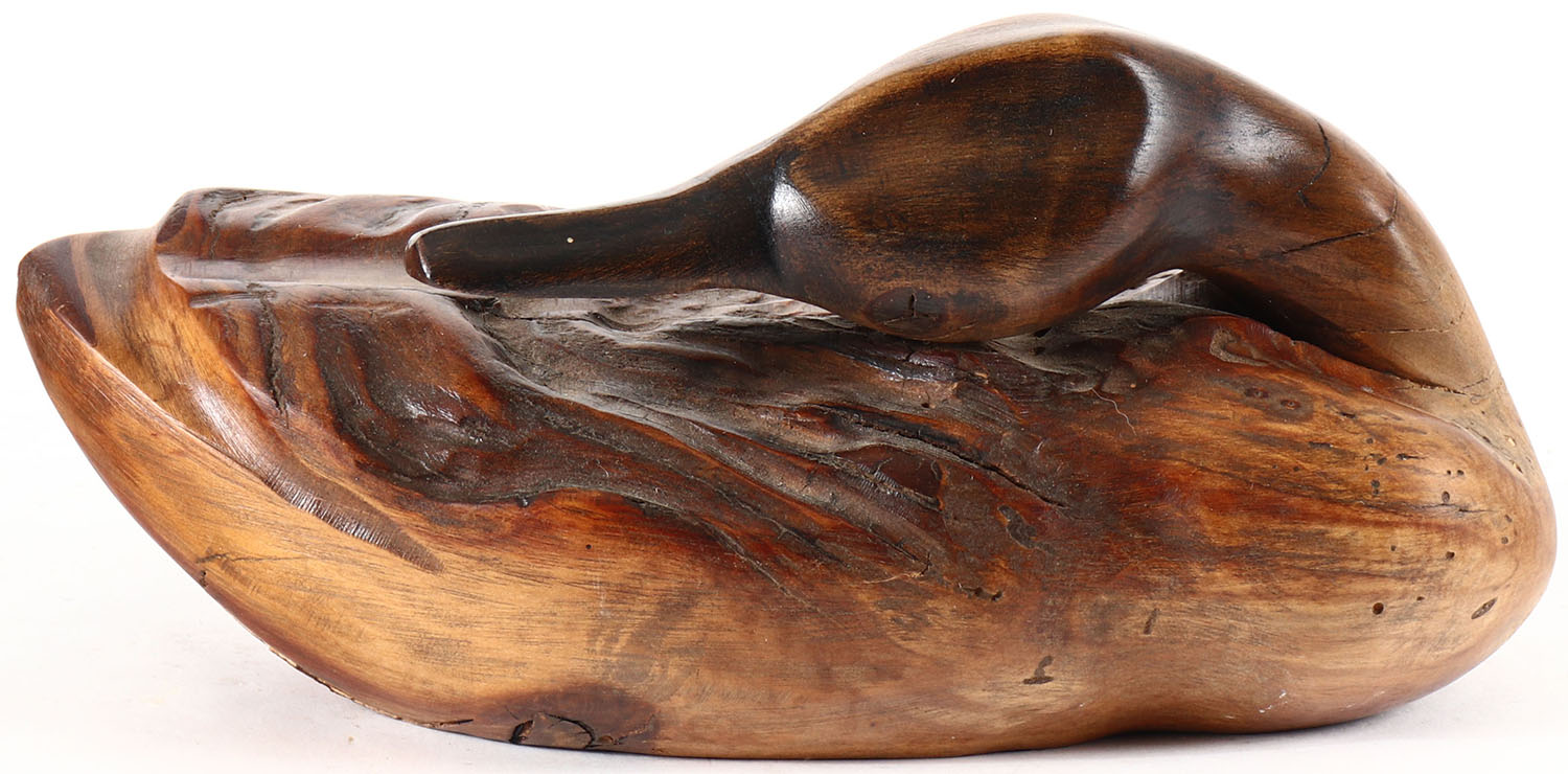 Sleeping Canvasback Hen by RRS, no eyes, solid wood, structurally excellent, signed on bottom. Grade: Excellent - Value: 6 to 20