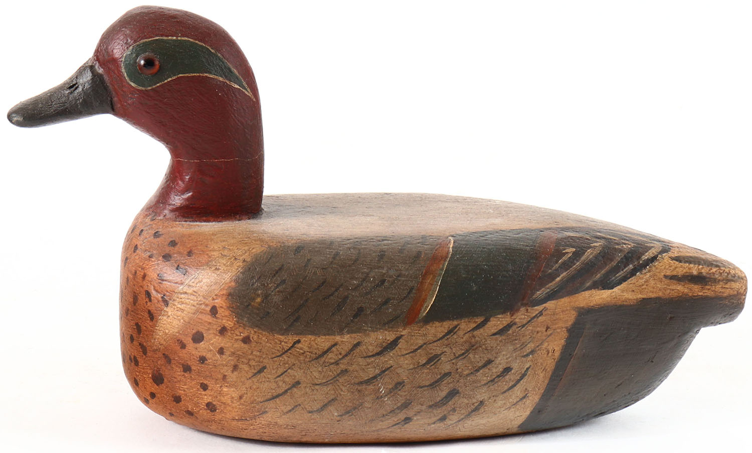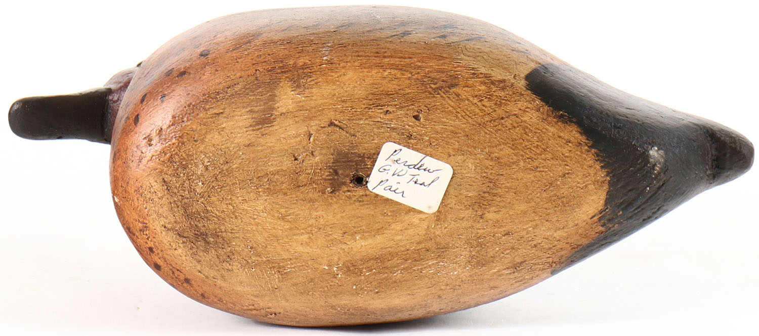 Green Winged Teal Drake by Charles Perdew, glass eyes, hollow wood, original paint, structurally excellent. Grade: Excellent - Value: 30 to 100