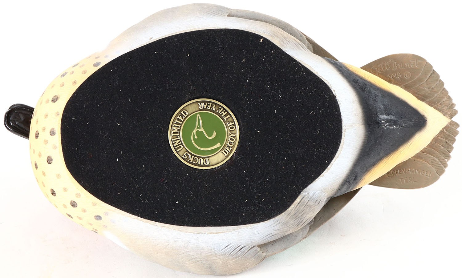 Green Winged Teal Drake by Ducks Unlimited, glass eyes, solid wood, original paint, structurally excellent, branded by DUCKS UNLIMITED on bottom. Grade: MINT - Value: 20 to 60