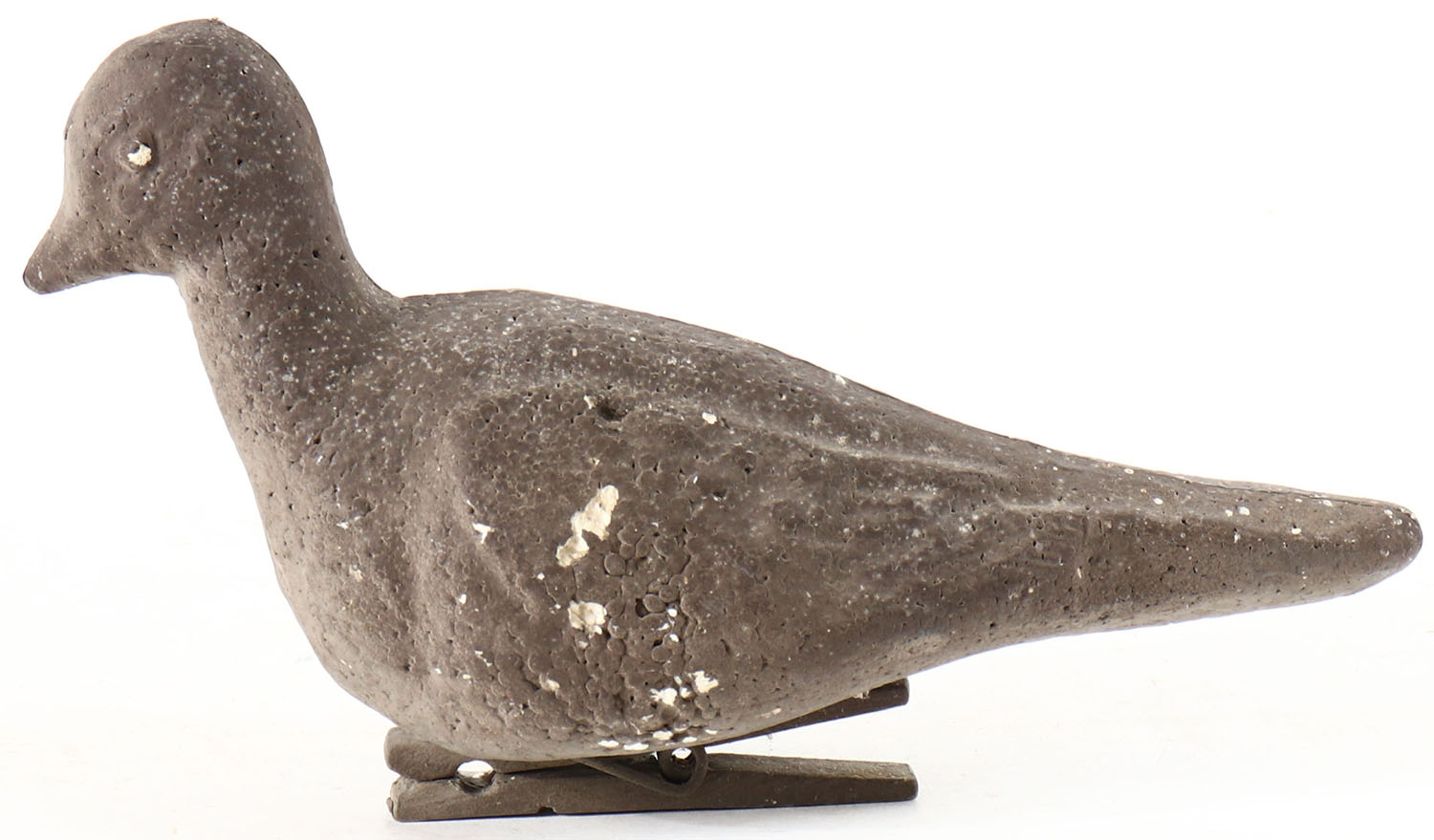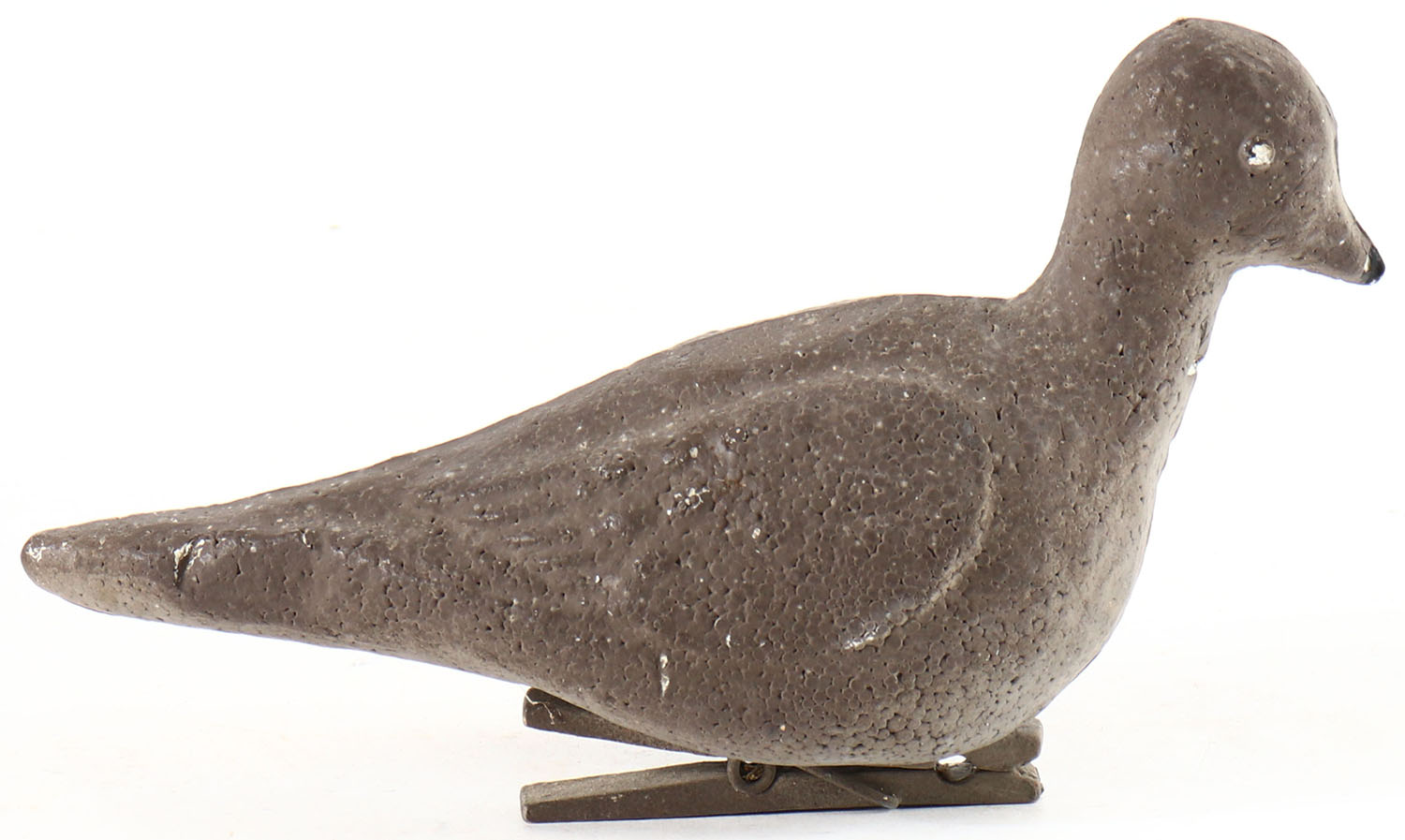 Dove by Carry-Lite Decoys, painted eyes, solid Styrofoam body with some minor wear, original surface, has clip on bottom of body. Grade: Very Good - Value: 2 to 20