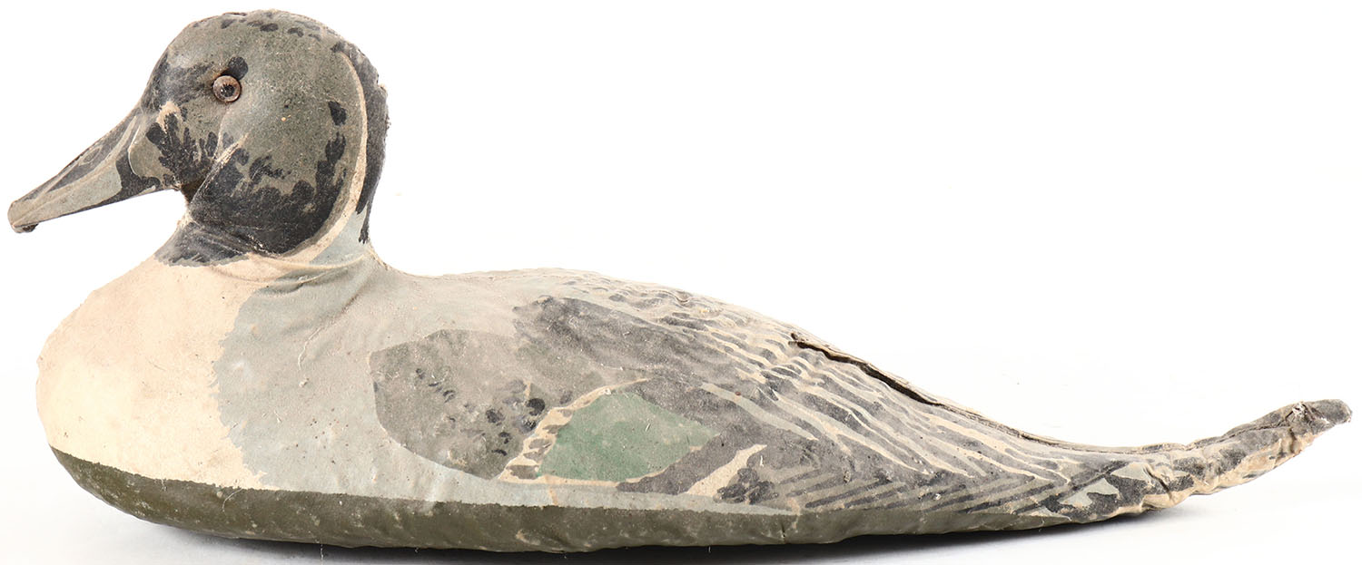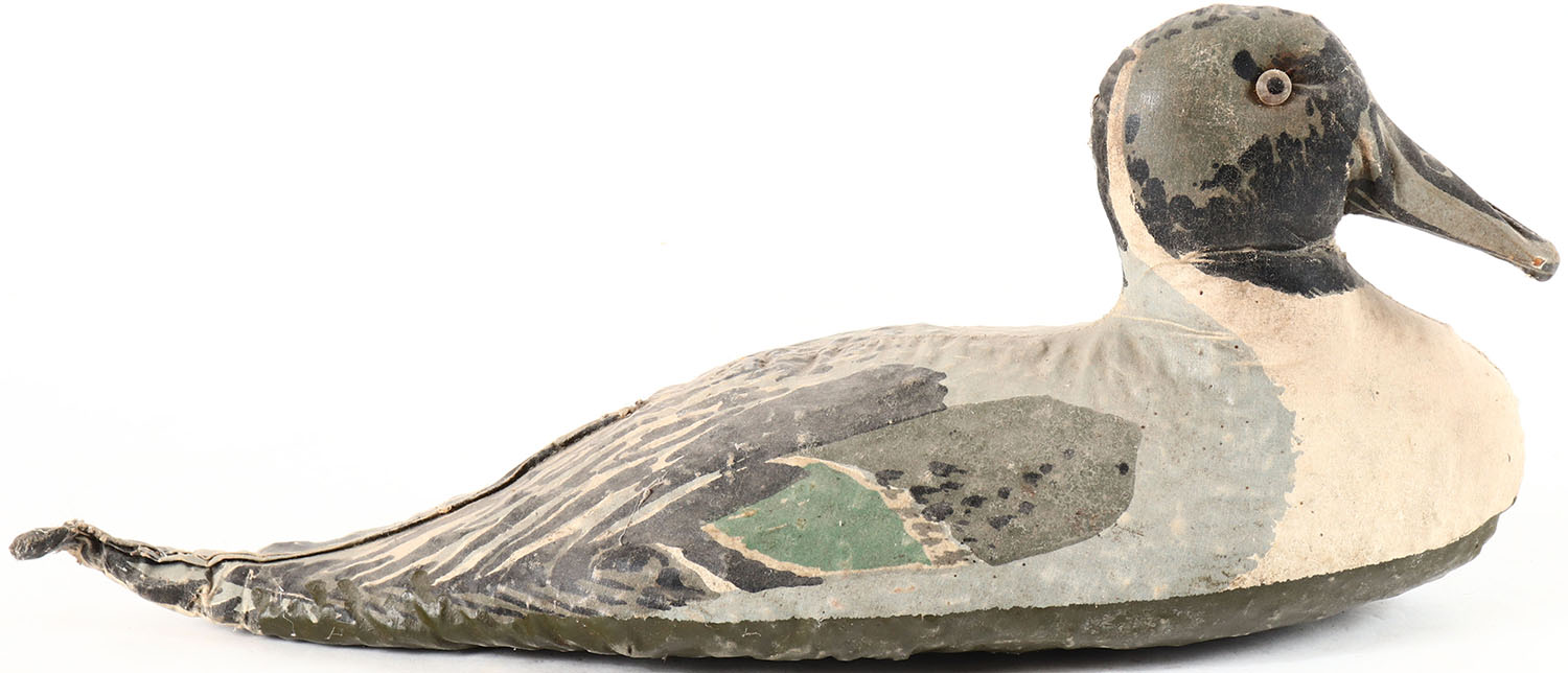 Pintail Drake by Armstrong Decoy Co., Houston, TX, glass eyes, canvas over cork, original paint, head has wear. Grade: Very Good + - Value: 20 to 40