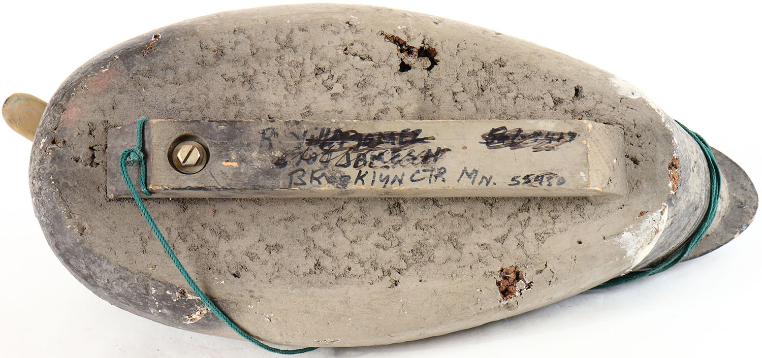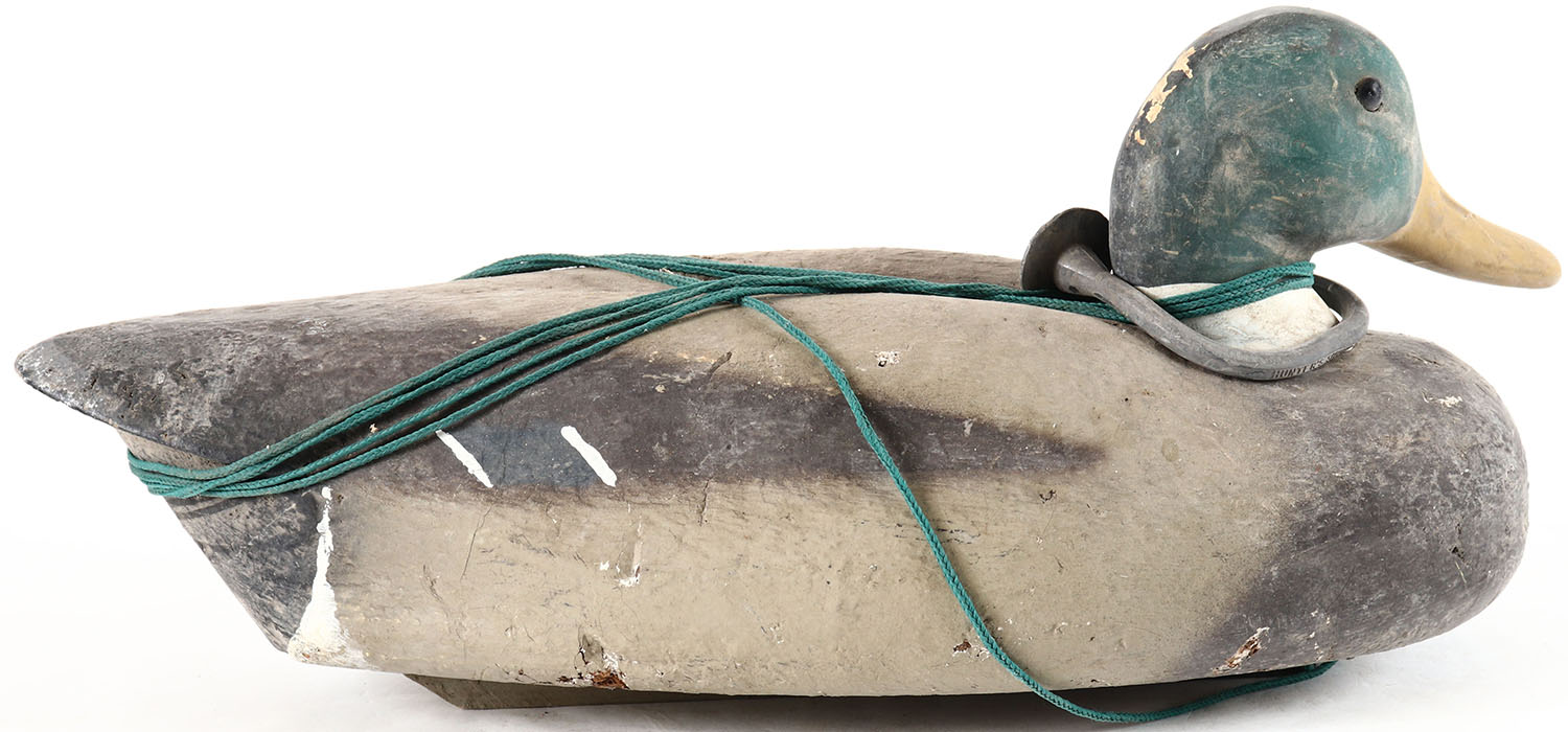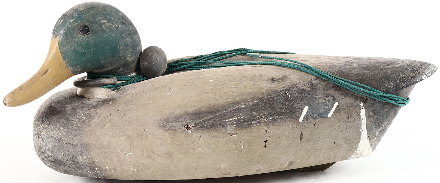 Mallard Drake by unknown factory, glass eyes, cork body with wood head, original paint, structurally excellent. Grade: Excellent - Value: 20 to 40