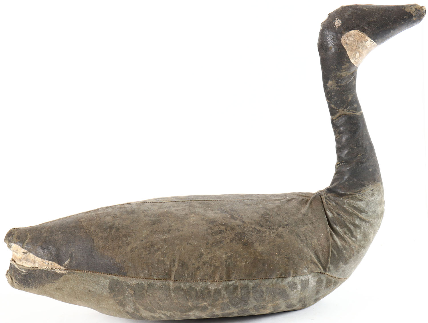 Canada Goose attributed to Macal Dukoy Decoys, Whidbey Island, WA, no eyes, stuffed canvas, original paint, structurally excellent. Grade: Excellent - Value: 30 to 60