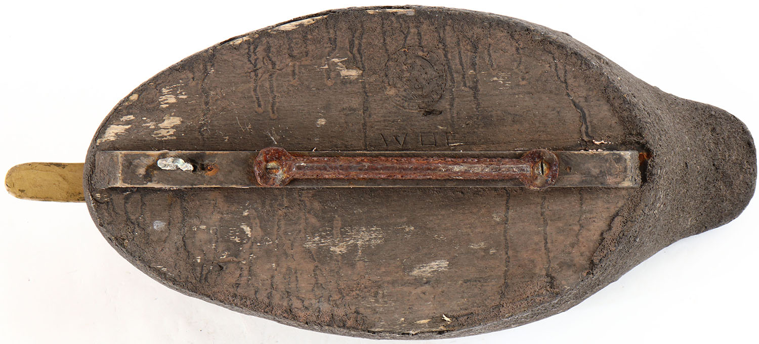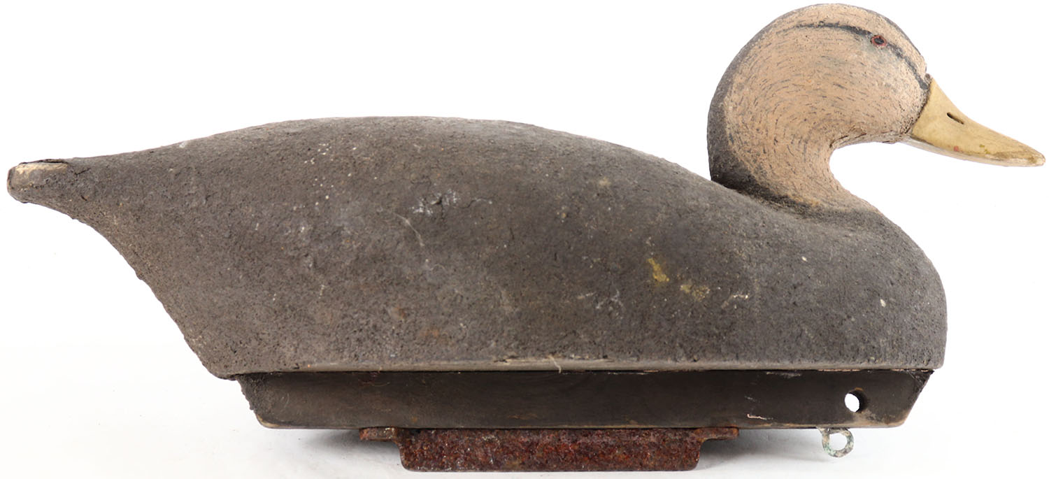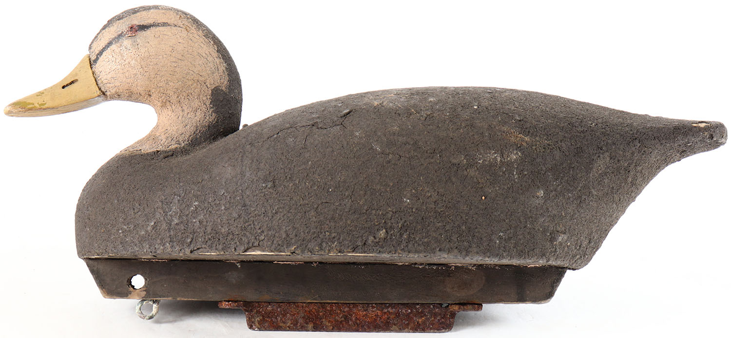 Black Duck by Wildfowler, tack eyes, solid cork body, repainted, has age cracks on back and bottom. Grade: Very Good + - Value: 10 to 30