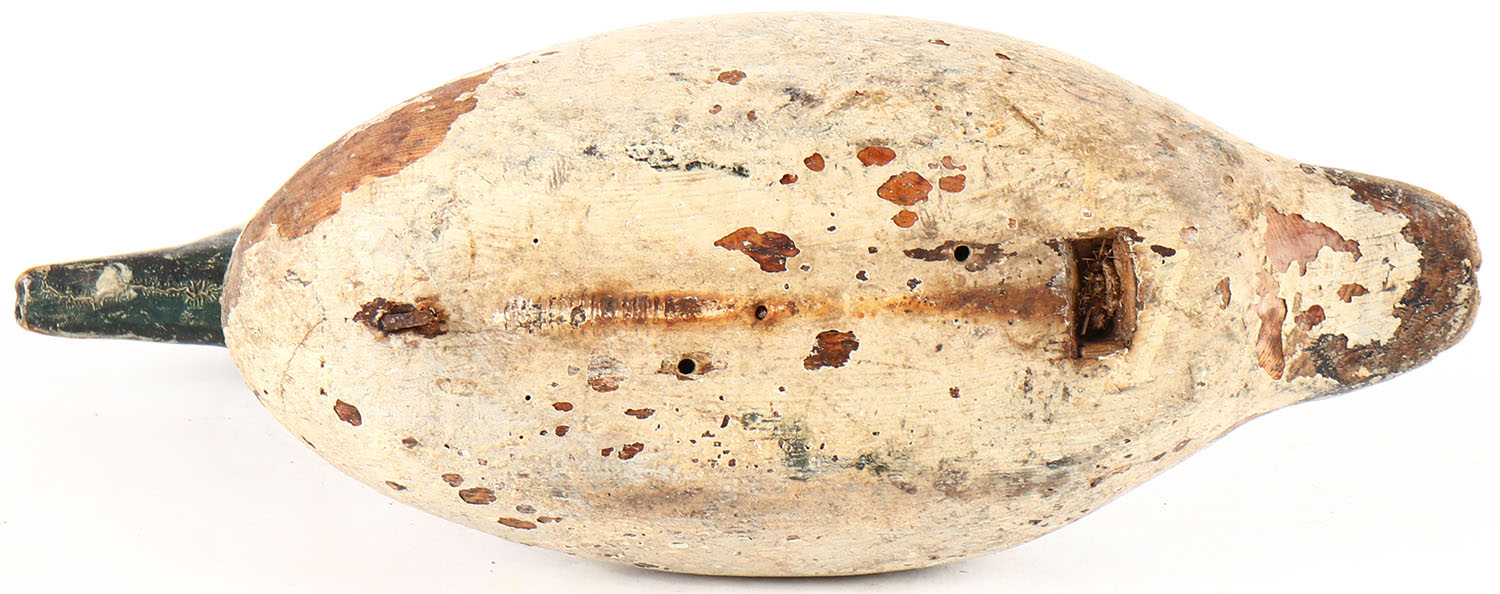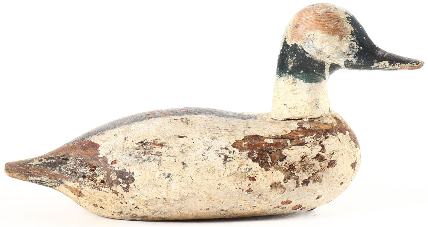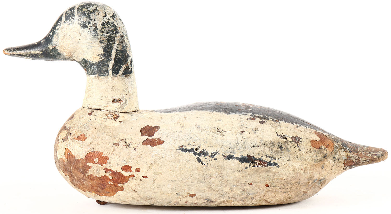 Goldeneye Drake with head married to a Mason body, no eyes, solid wood, working repaint, wear to body, head is loose. Grade: Very Good + - Value: 10 to 30