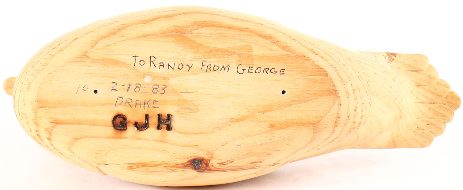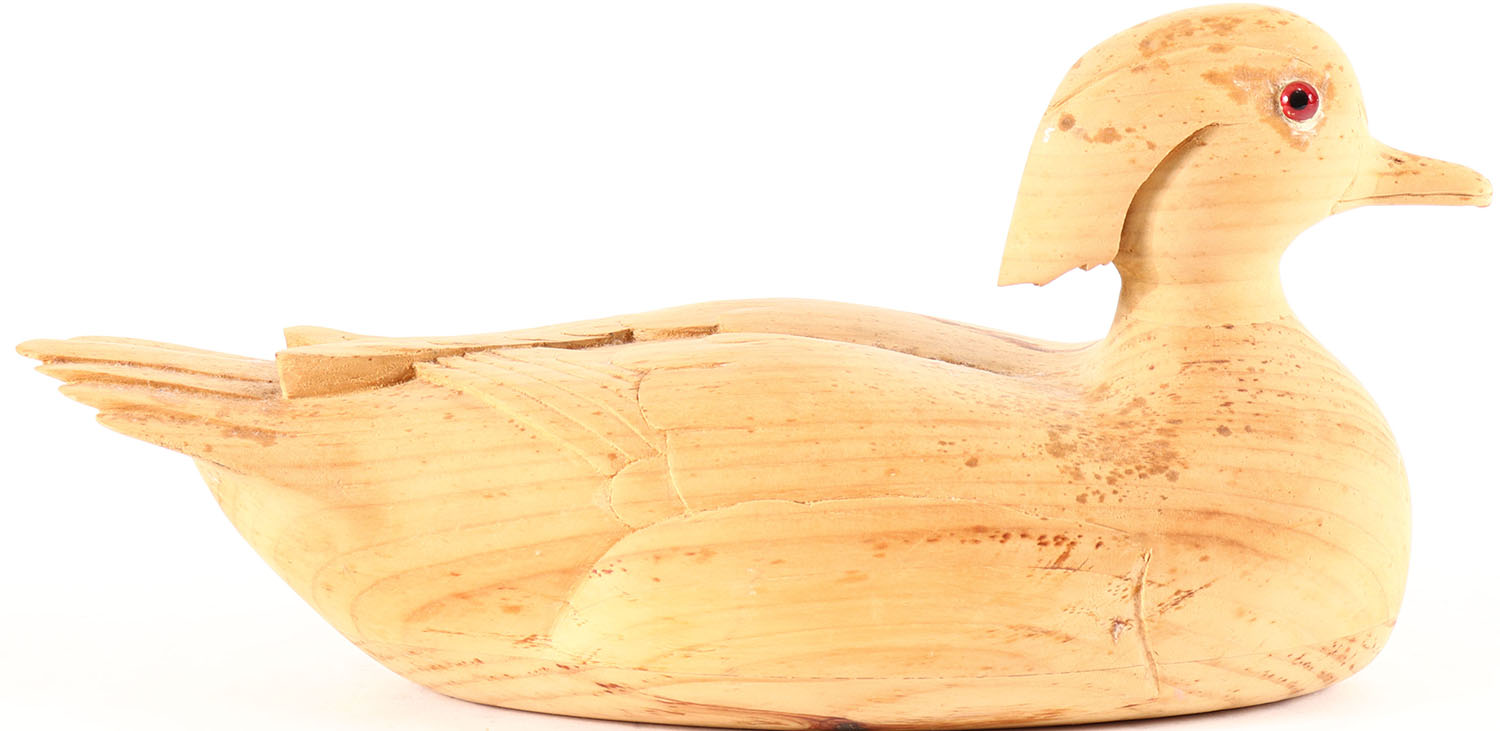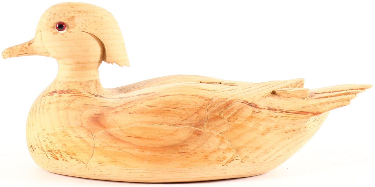 Woodduck Drake by ''GJH'', glass eyes, solid wood, structurally excellent. Grade: Excellent - Value: 2 to 20