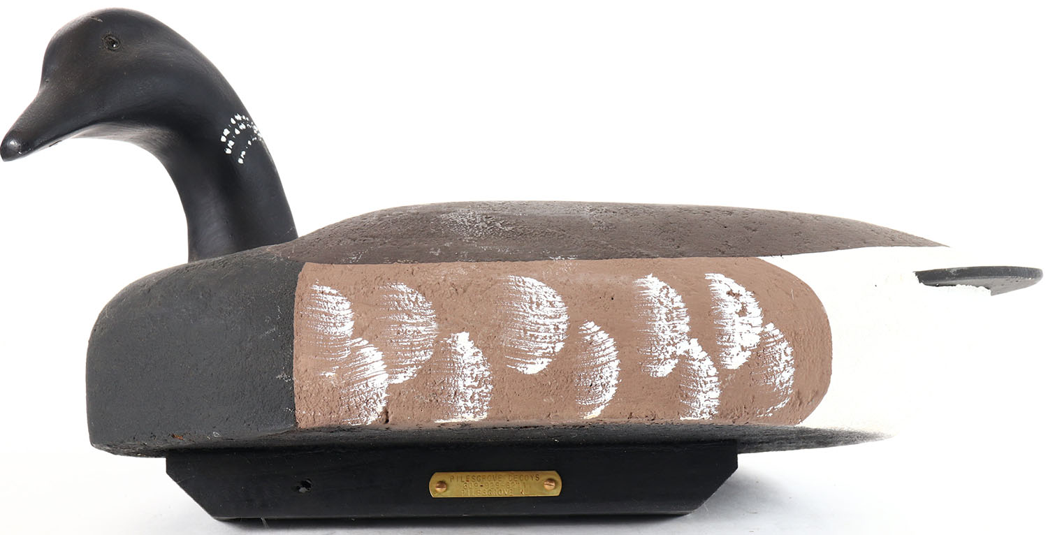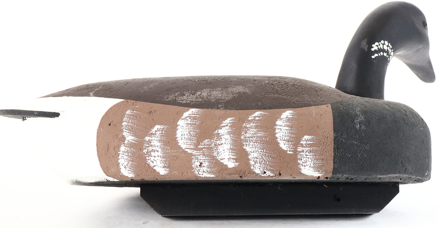 Black Brant by Pilesgrove Decoys, NJ, glass eyes, solid cork body, wood head, original paint, structurally excellent. Grade: Excellent - Value: 10 to 40