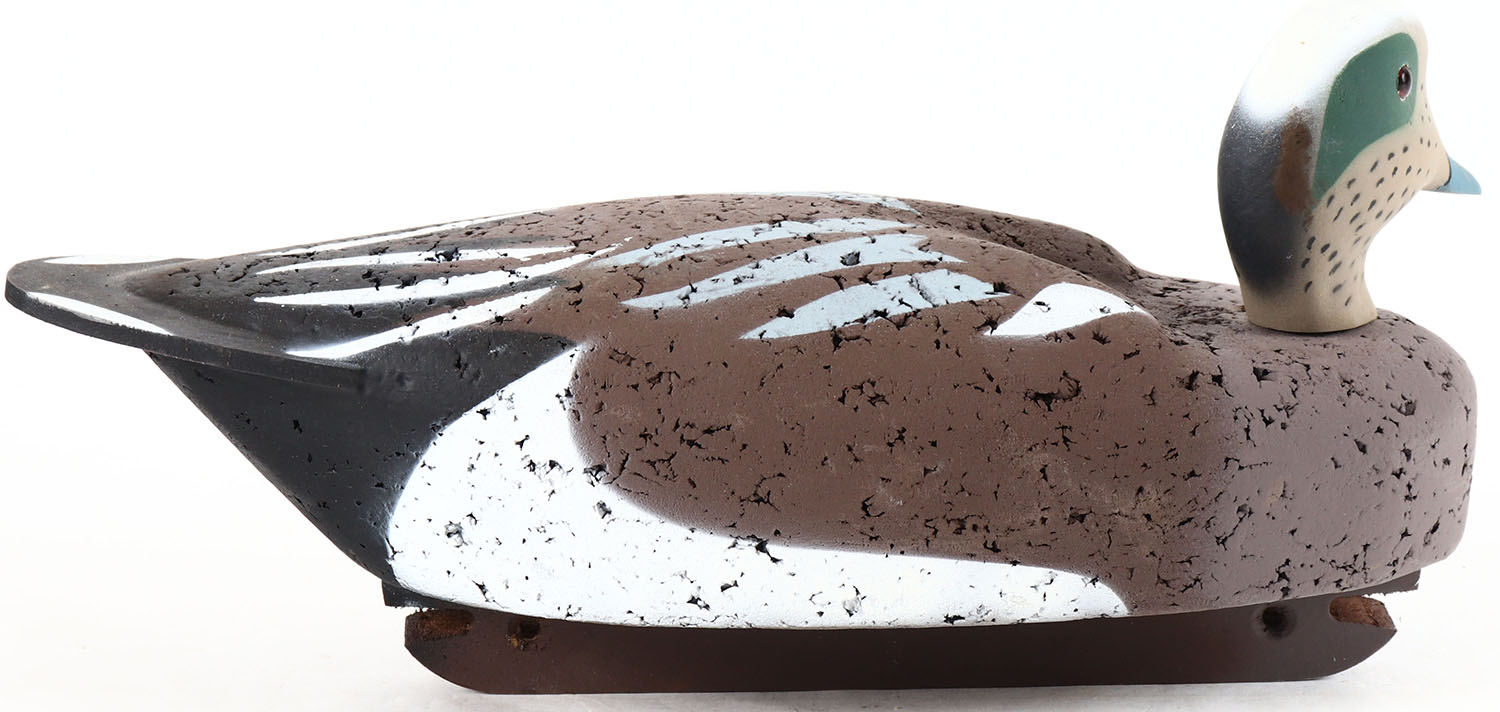 Widgeon Drake by unknown maker, glass eyes, solid cork body, original paint, structurally excellent. Grade: Excellent - Value: 10 to 40
