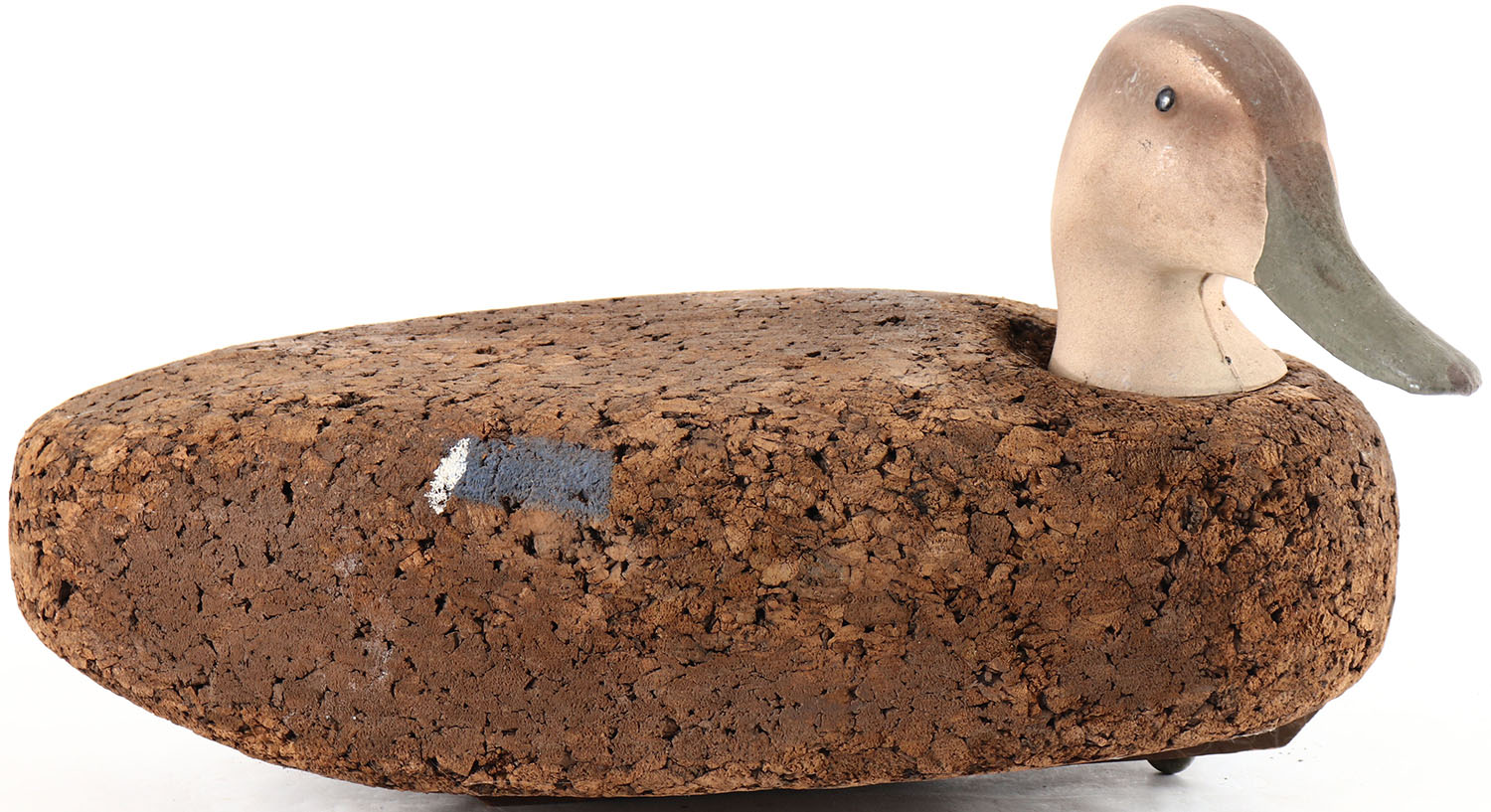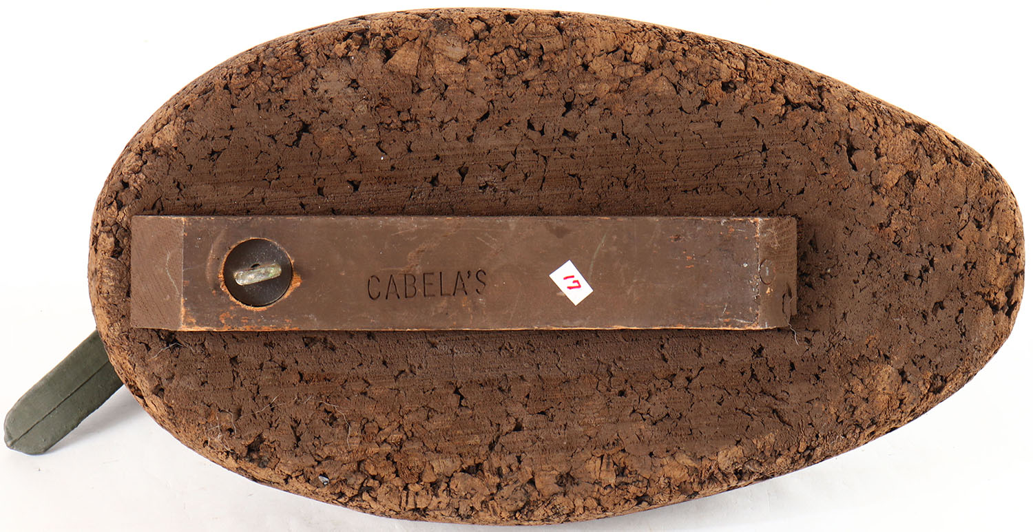 Black Duck by Cabela's, painted eyes, solid cork body, original paint, structurally excellent, branded by CABELA'S on bottom. Grade: Excellent - Value: 10 to 30