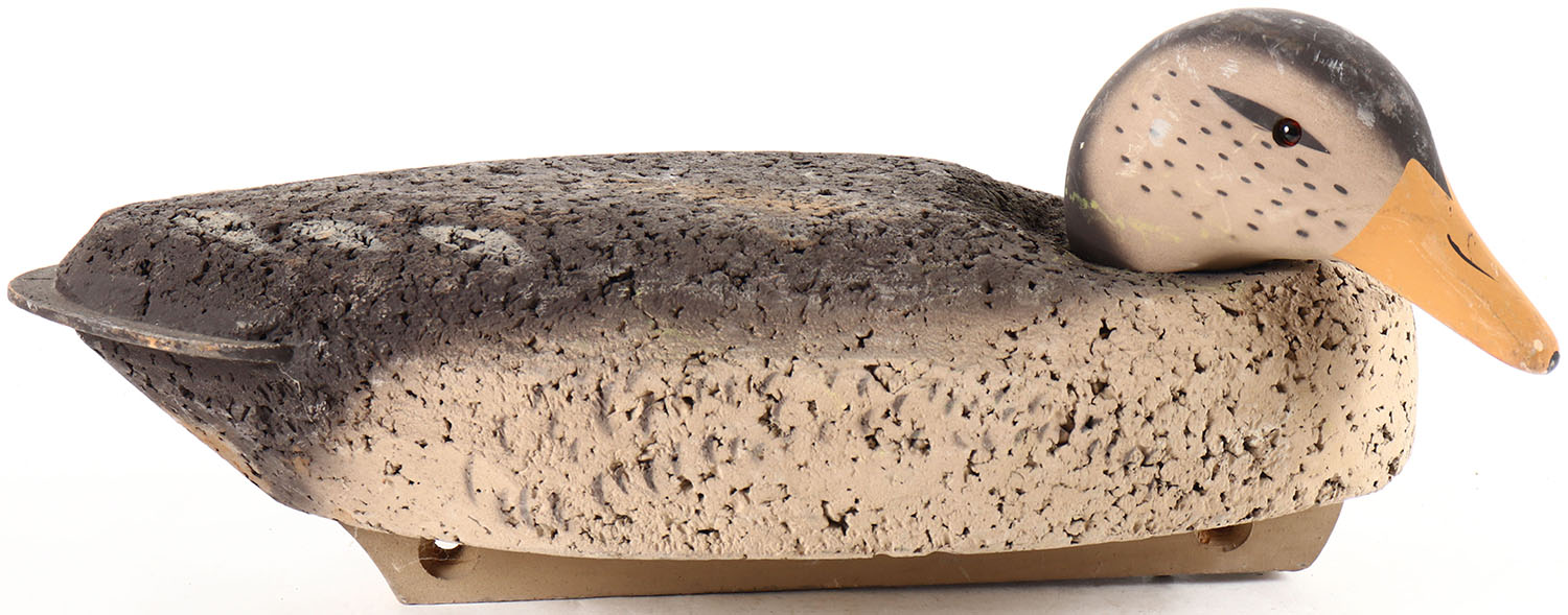 Mallard Hen by unknown maker, glass eyes, solid cork body, original paint, structurally excellent. Grade: Excellent - Value: 10 to 30