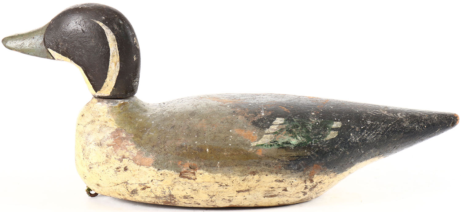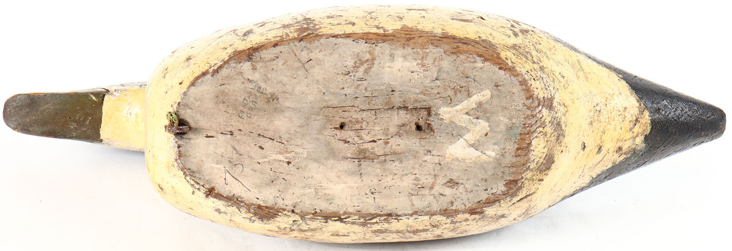 Pintail Drake by unknown factory, no eyes, solid wood, working repaint, head is loose. Grade: Very Good + - Value: 10 to 30