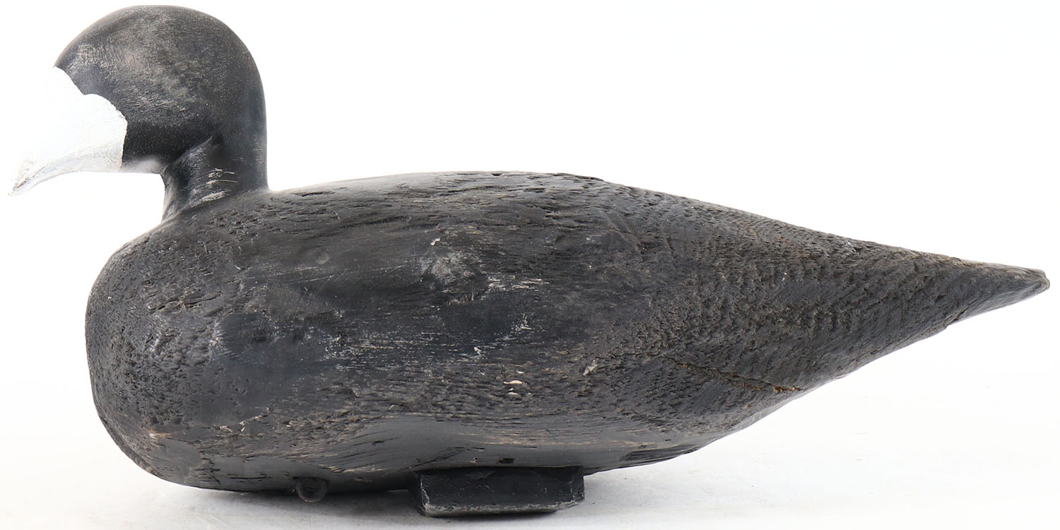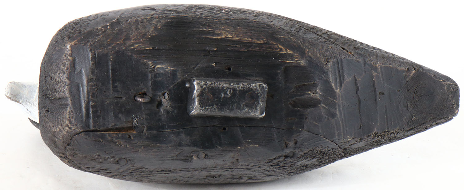 Coot by unknown maker, painted eyes, solid wood, has age cracks on back and bottom. Grade: Very Good + - Value: 10 to 30