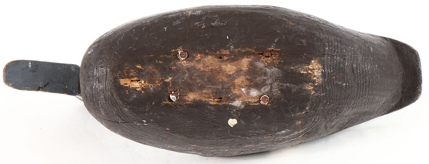 Bluebill Hen by unknown maker, painted eyes, solid wood, original paint, has age cracks on entire body. Grade: Very Good - Value: 10 to 30