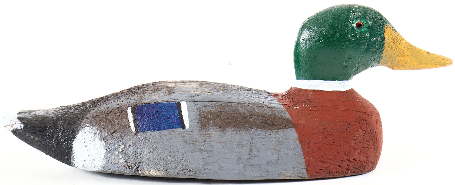 Mallard Drake by unknown Pascagoula, MS, glass eyes, solid wood, repainted, has age cracks on back