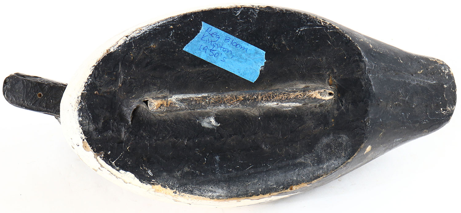 Goldeneye Hen by Reg Bloom, Kingston, glass eyes, hollow wood, original paint, has age cracks on body and head. Grade: Very Good + - Value: 10 to 40