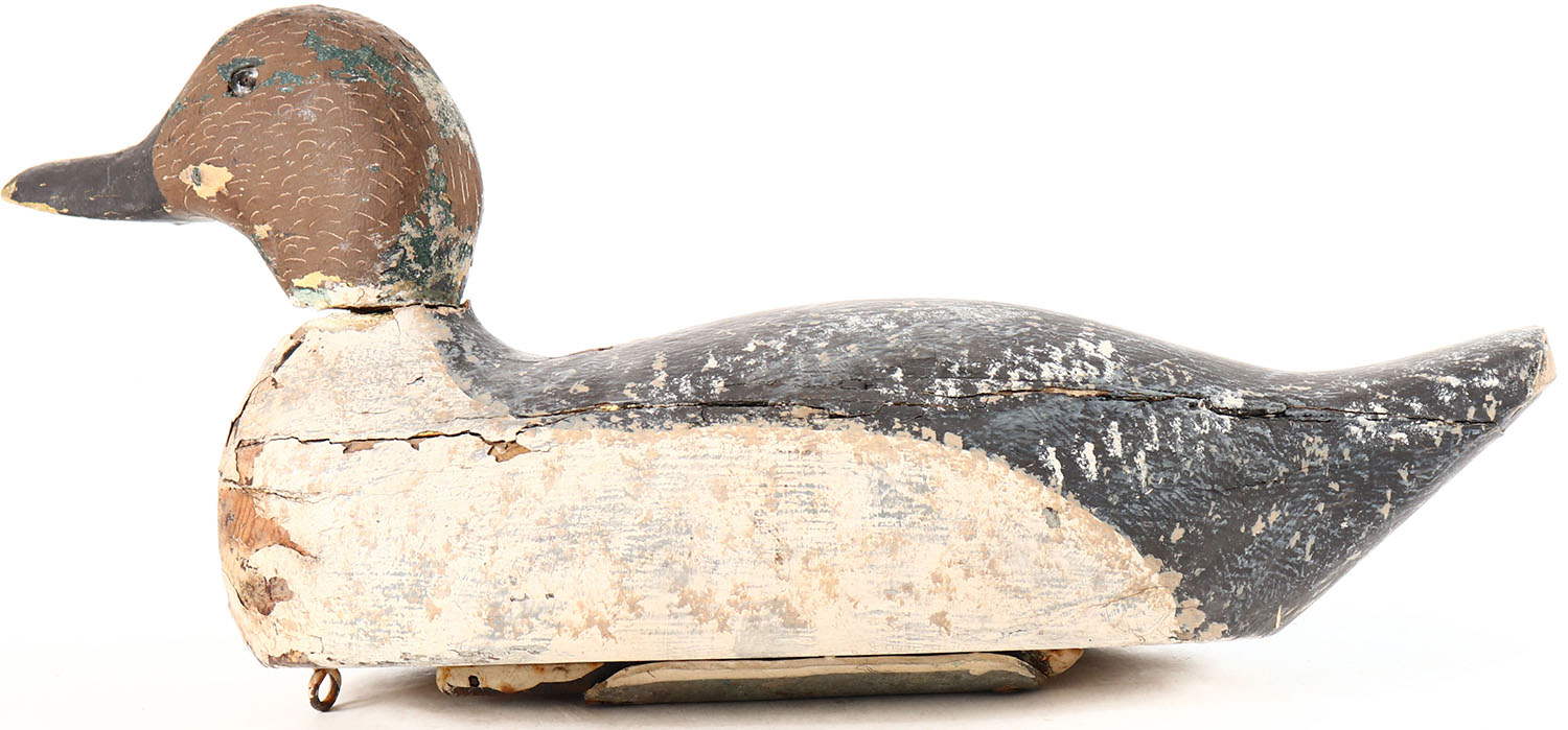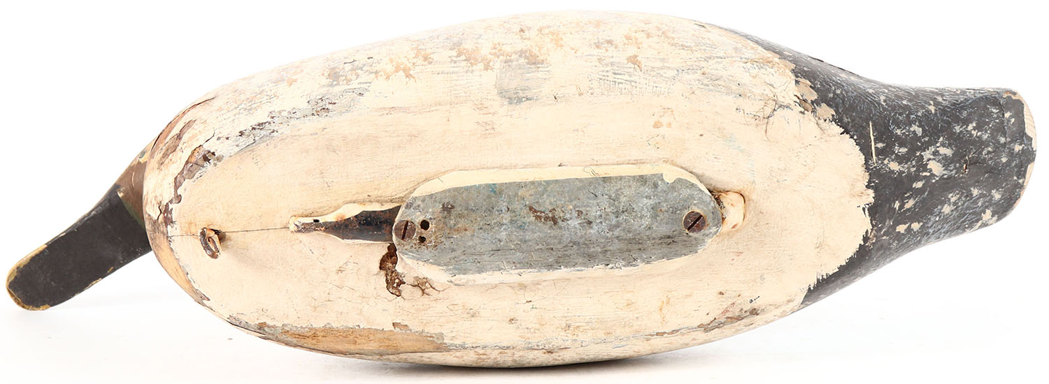 Pintail Drake by unknown factory, glass eyes, solid wood, working repaint, has age cracks on body and neck. Grade: Very Good + - Value: 10 to 20