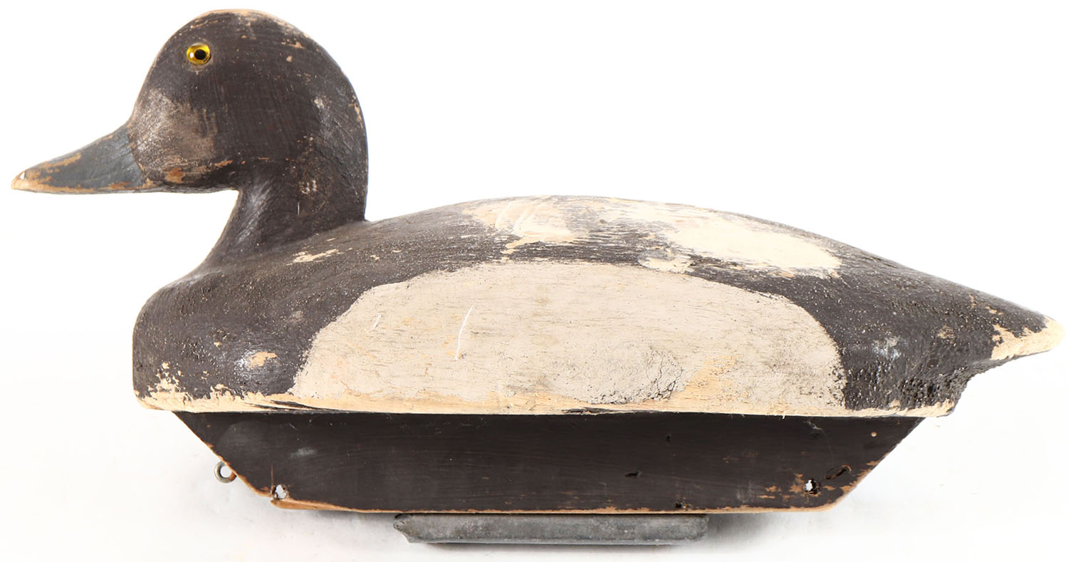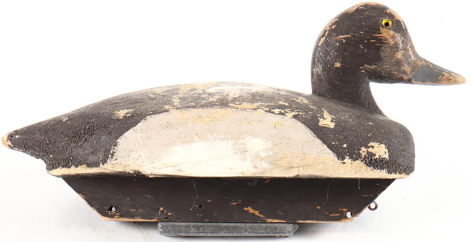 Bluebill Drake by unknown maker, glass eyes, solid balsa wood, original paint, has wear to body. Grade: Very Good - Value: 10 to 20