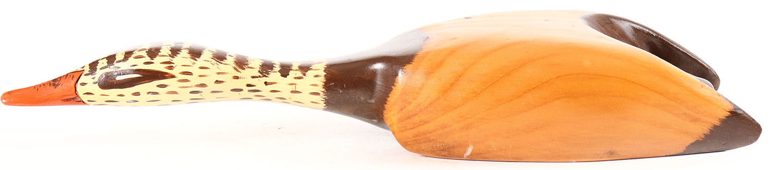 Swimming Mallard by unknown maker, painted eyes, solid wood, original paint, structurally excellent. Grade: Excellent - Value: 6 to 10