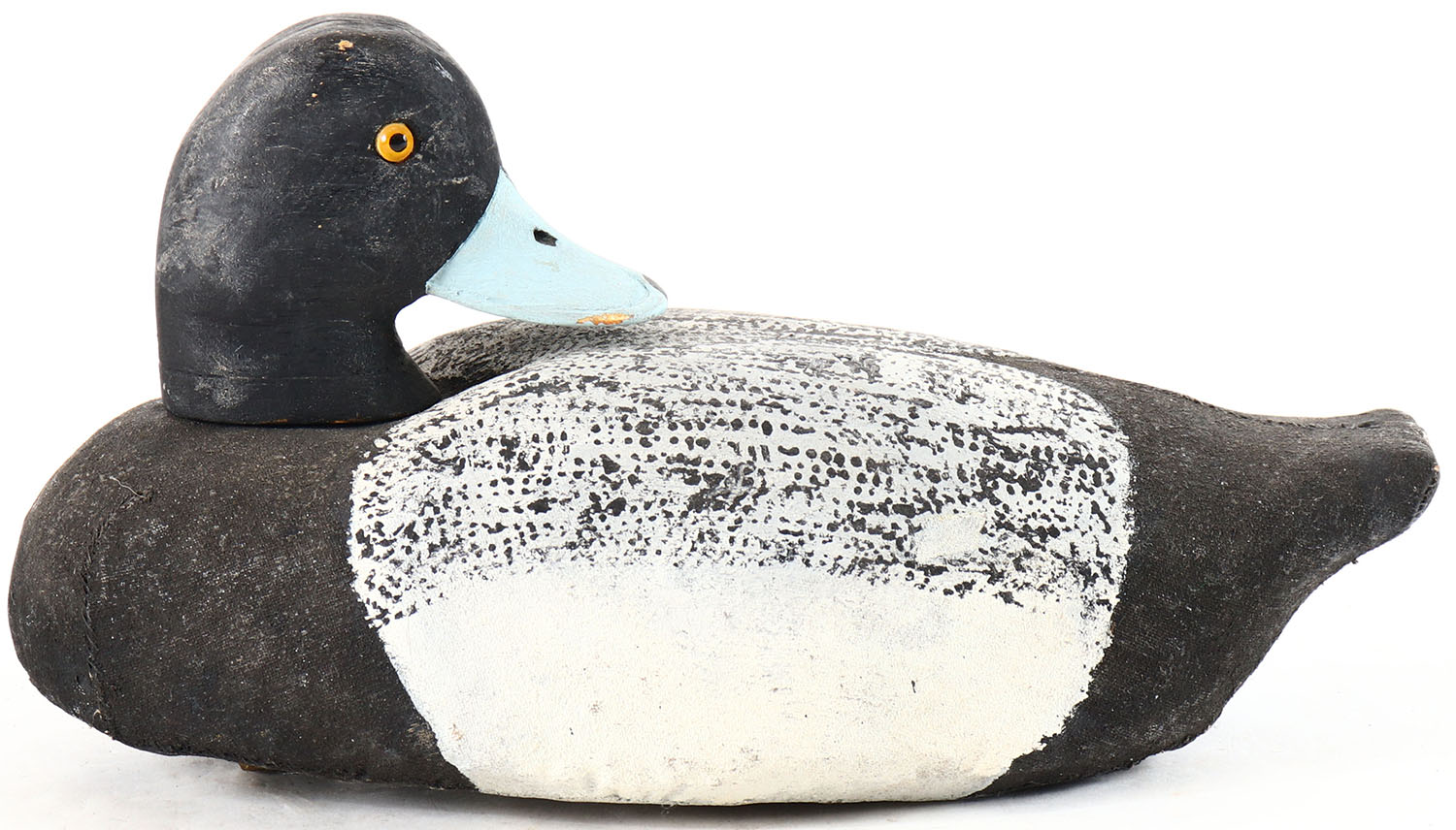 Preening Bluebill Drake by unknown maker, glass eyes, original paint, structurally excellent. Grade: Very Good ++ - Value: 16 to 30