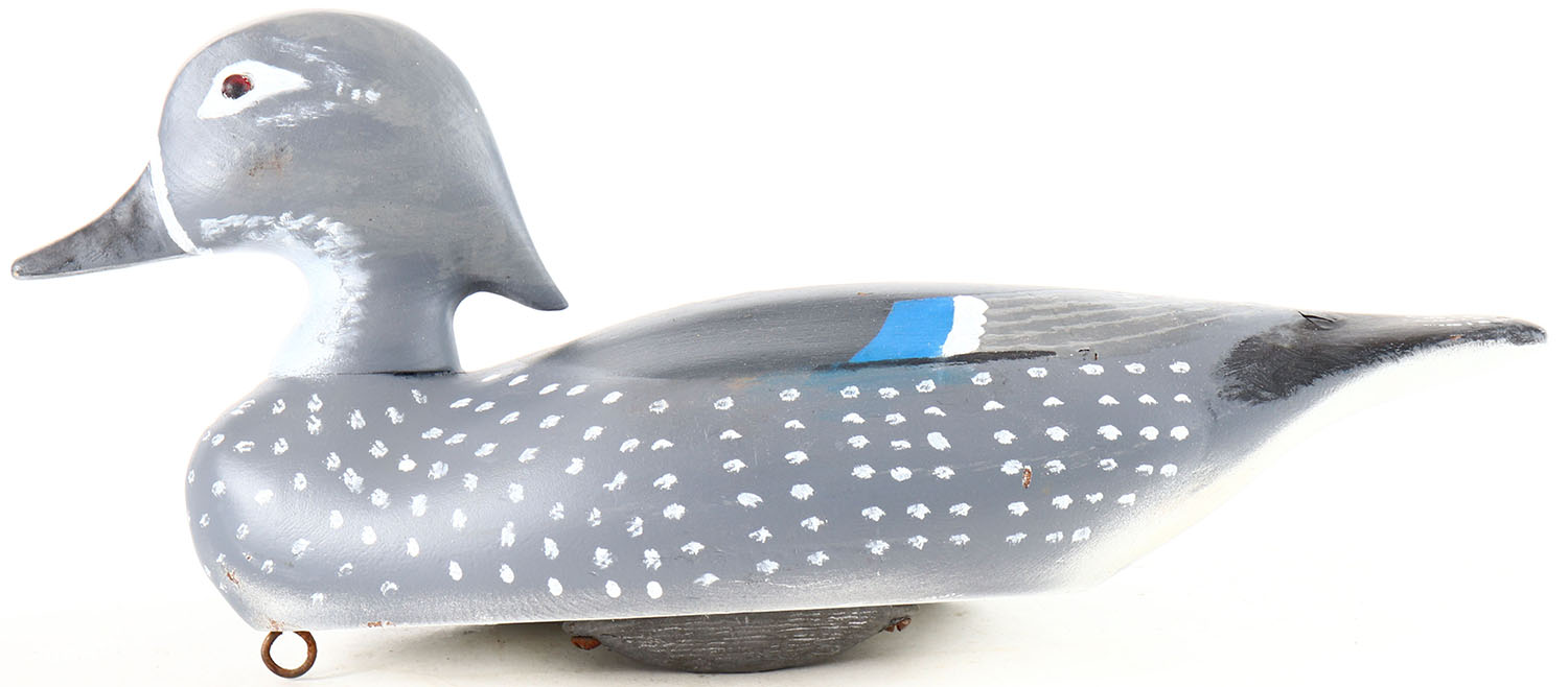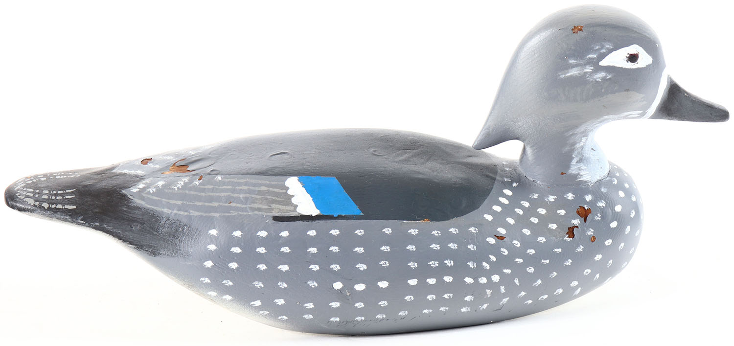 Woodduck Hen by unknown maker, painted eyes, solid wood, repainted, structurally excellent. Grade: Excellent + - Value: 10 to 20
