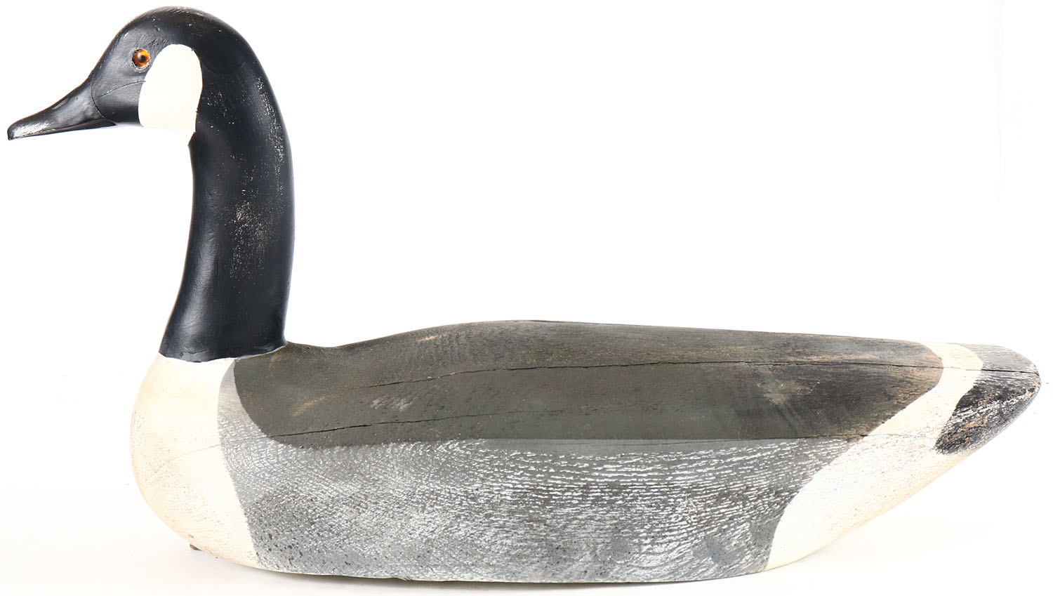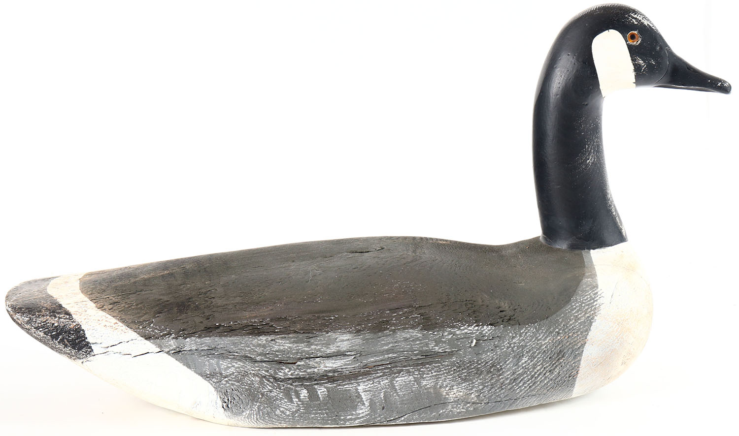 Canada Goose by unknown maker, glass eyes, solid wood, original paint, has age cracks on back and under neck. Grade: Very Good ++ - Value: 16 to 30
