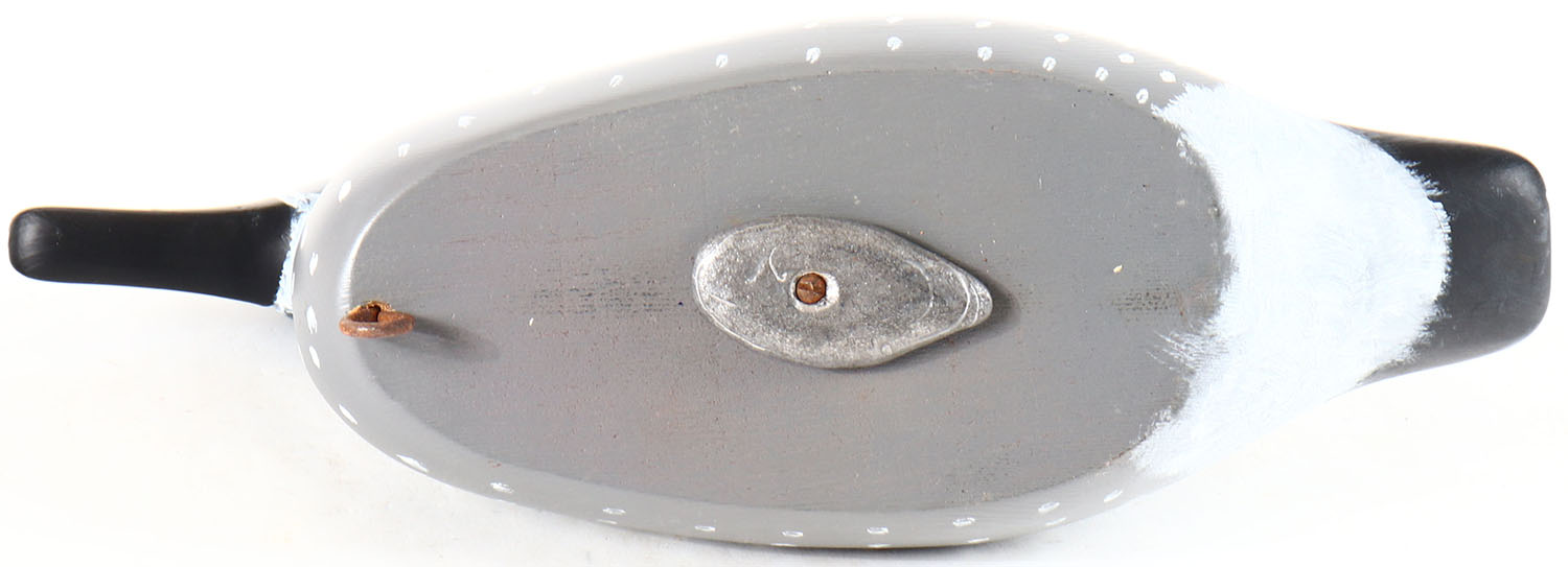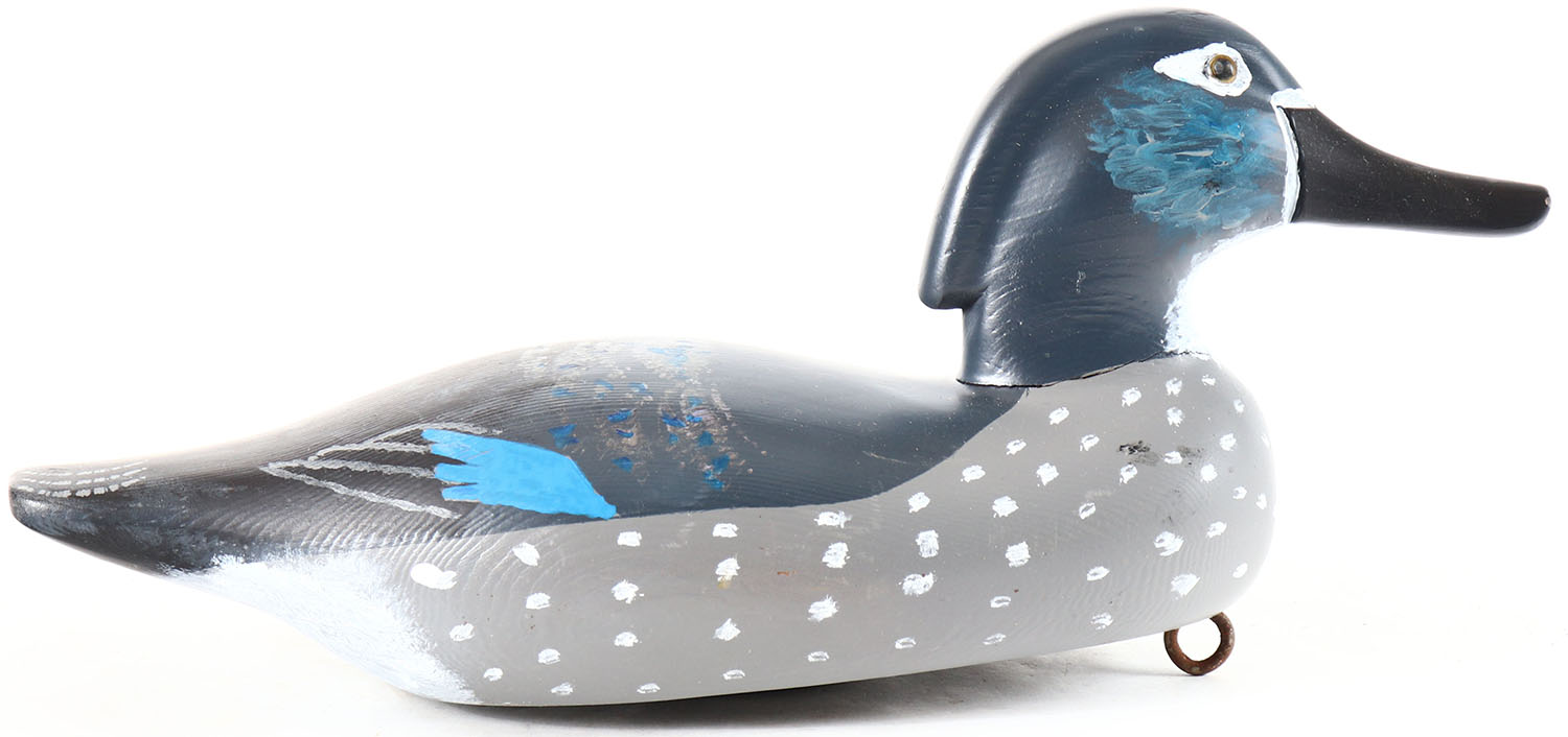 Woodduck Hen by unknown maker, glass eyes, solid wood, repainted, structurally excellent. Grade: Excellent + - Value: 10 to 30